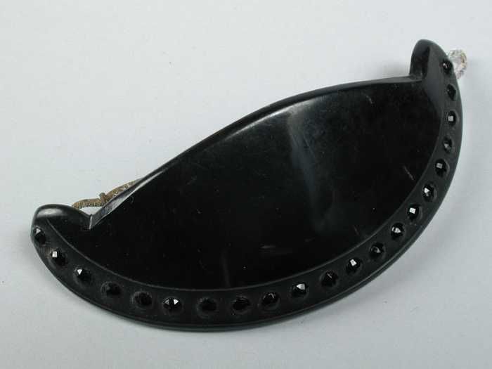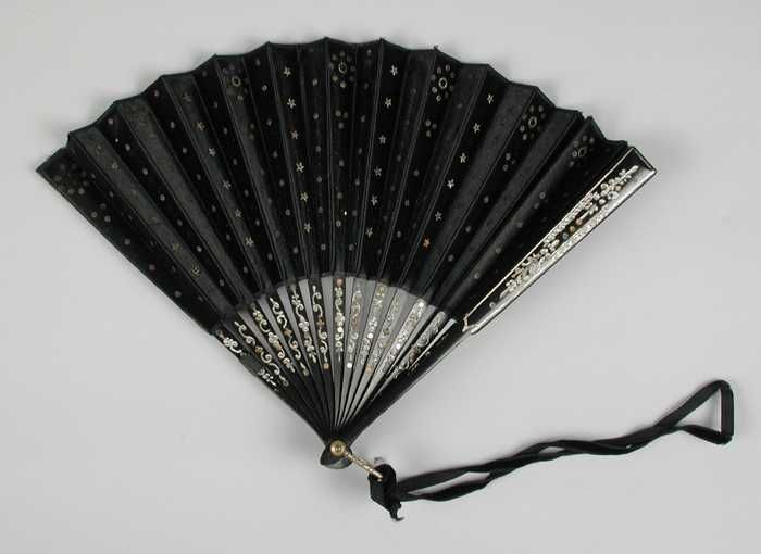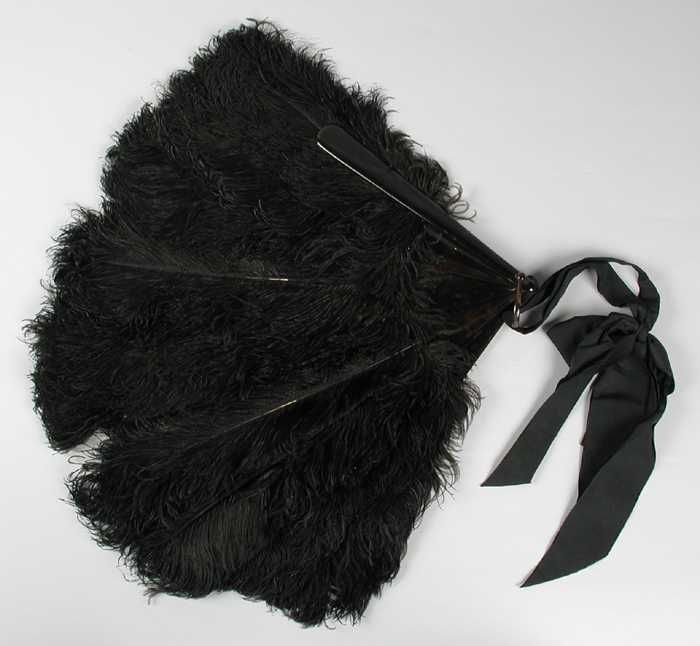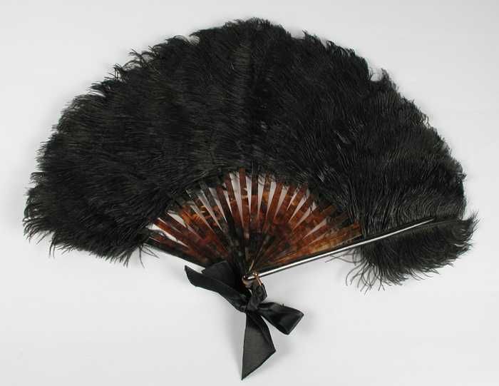 Vouwwaaier van zwarte veren, schildpad met zwart strik