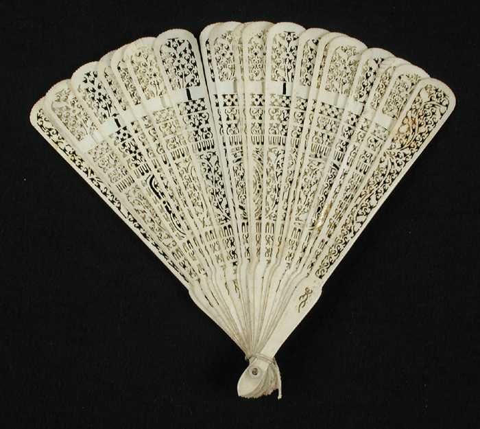 Ivoorkleurige opengewerkte brisé waaier met beschild...
