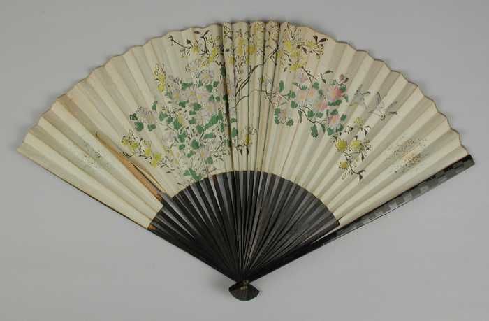 Waaier, beschilderd met bloemen en vogels
