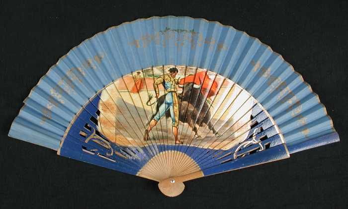 Waaier, blauw beschilderd met stierenvechter