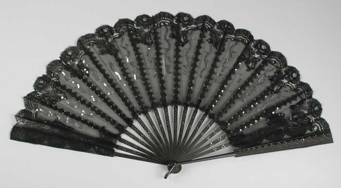 Waaier, zwart met kant en lovertjes