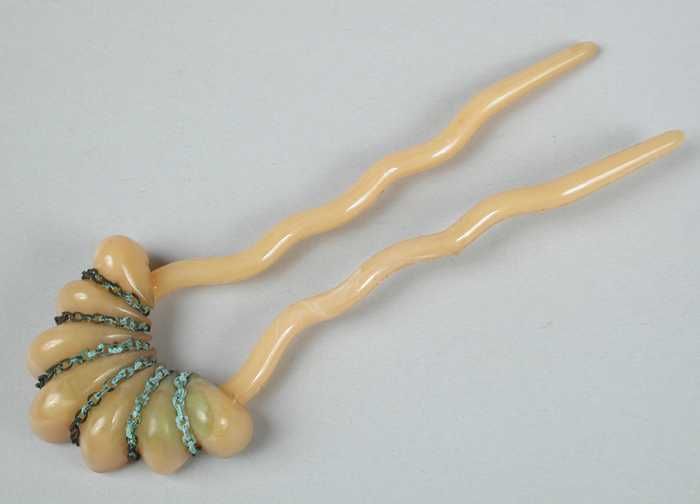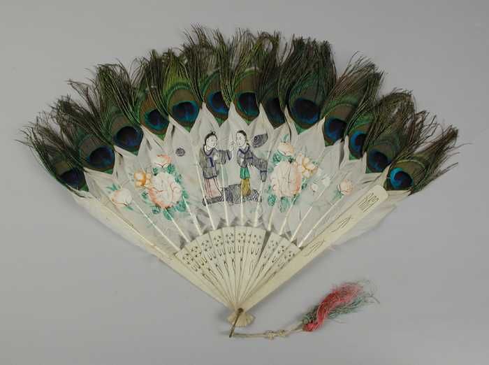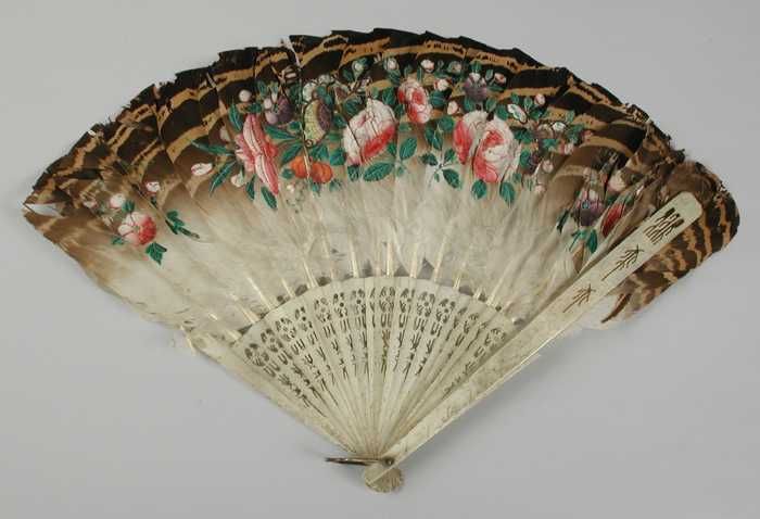 Waaier, beschilderde veren en benen van been