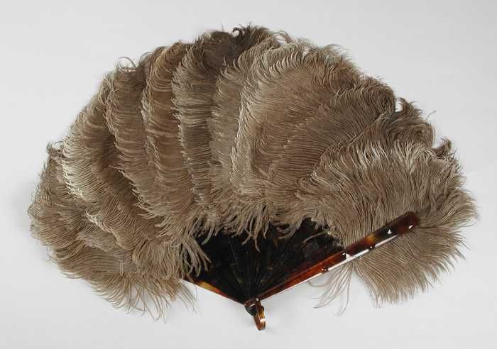 Waaier met beige sruisvogelveren en imitatie-schildp...