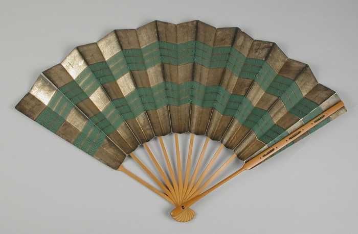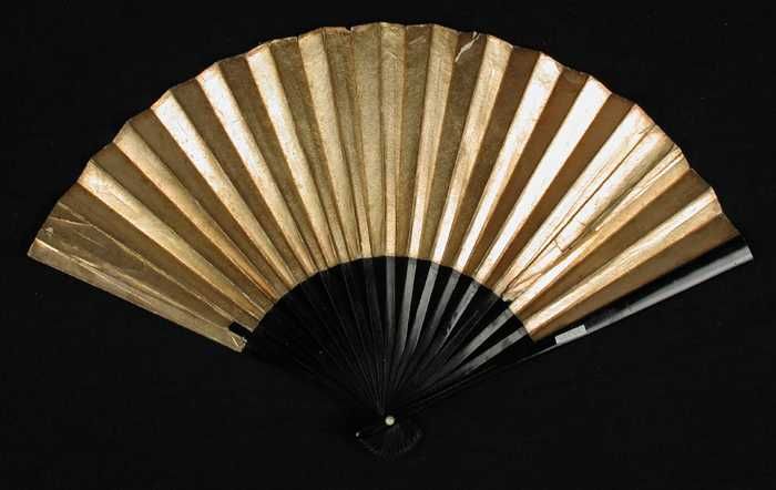 Grote papieren waaier met rotan benen, verguld blad ...