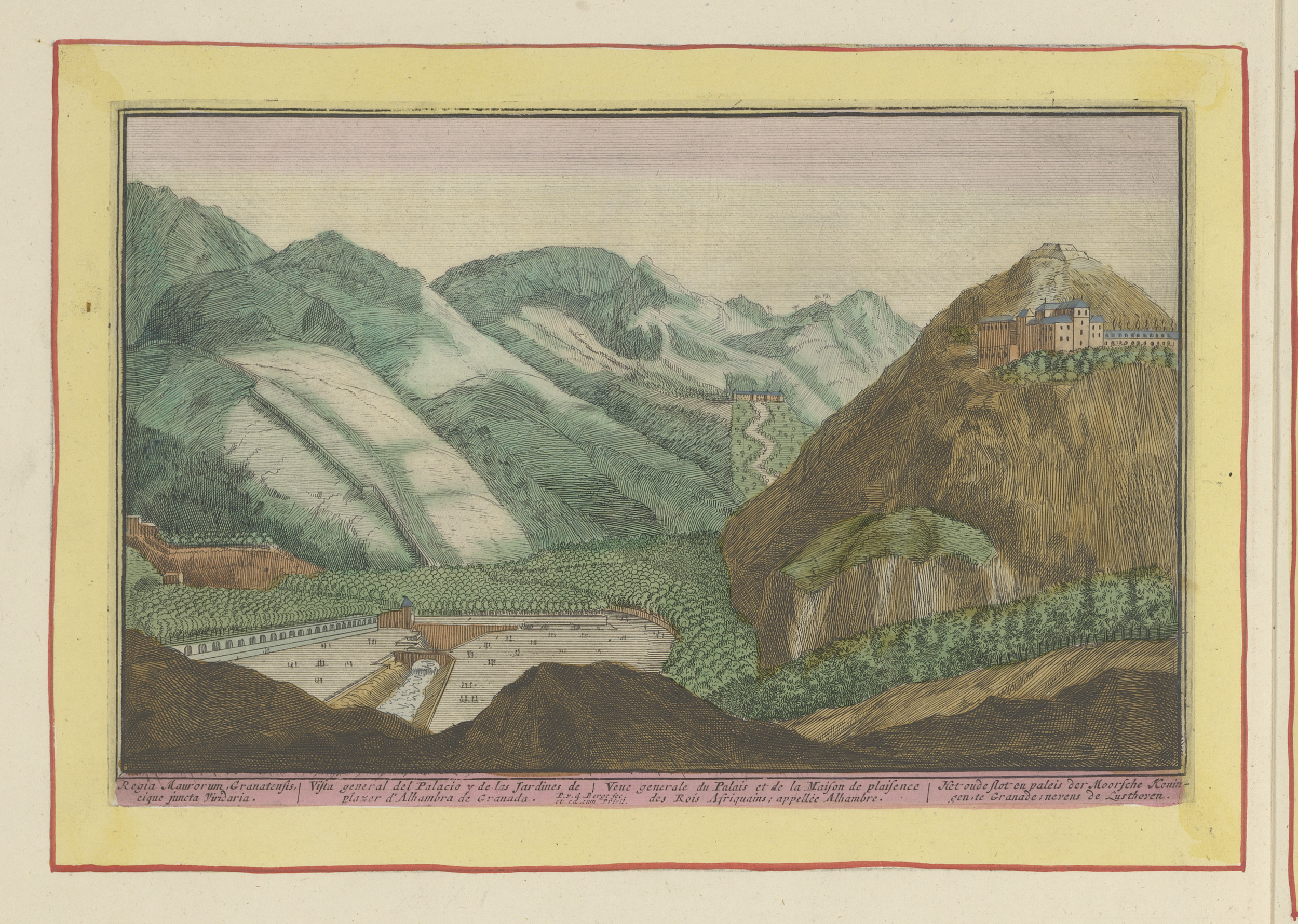 Gezicht op de gebouwen van het Alhambra te Granada