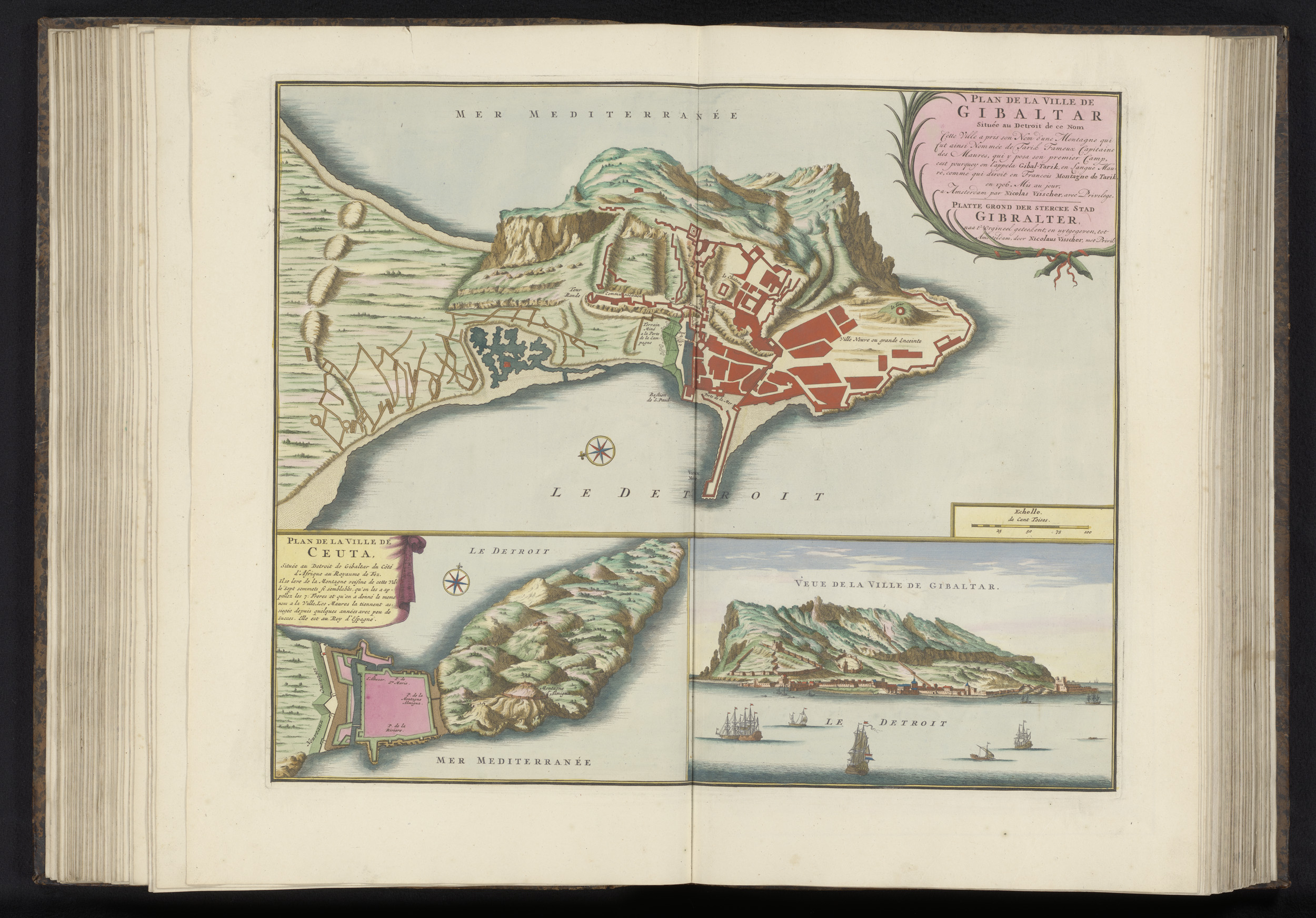 Plattegronden van Gibraltar en Ceuta en aanzicht van...