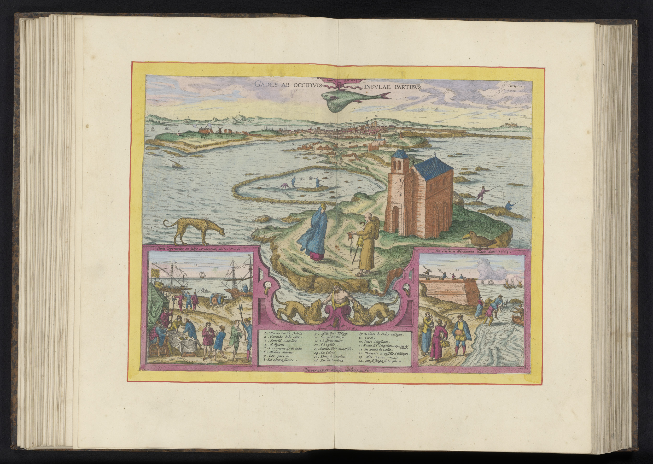 Gezicht op de landtong van Cádiz en de tonijnvisserij