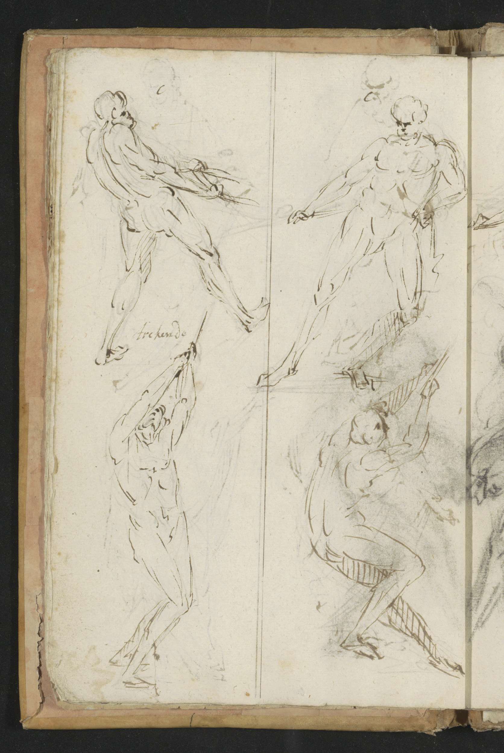 Vier naakte mannen die lasten trekken