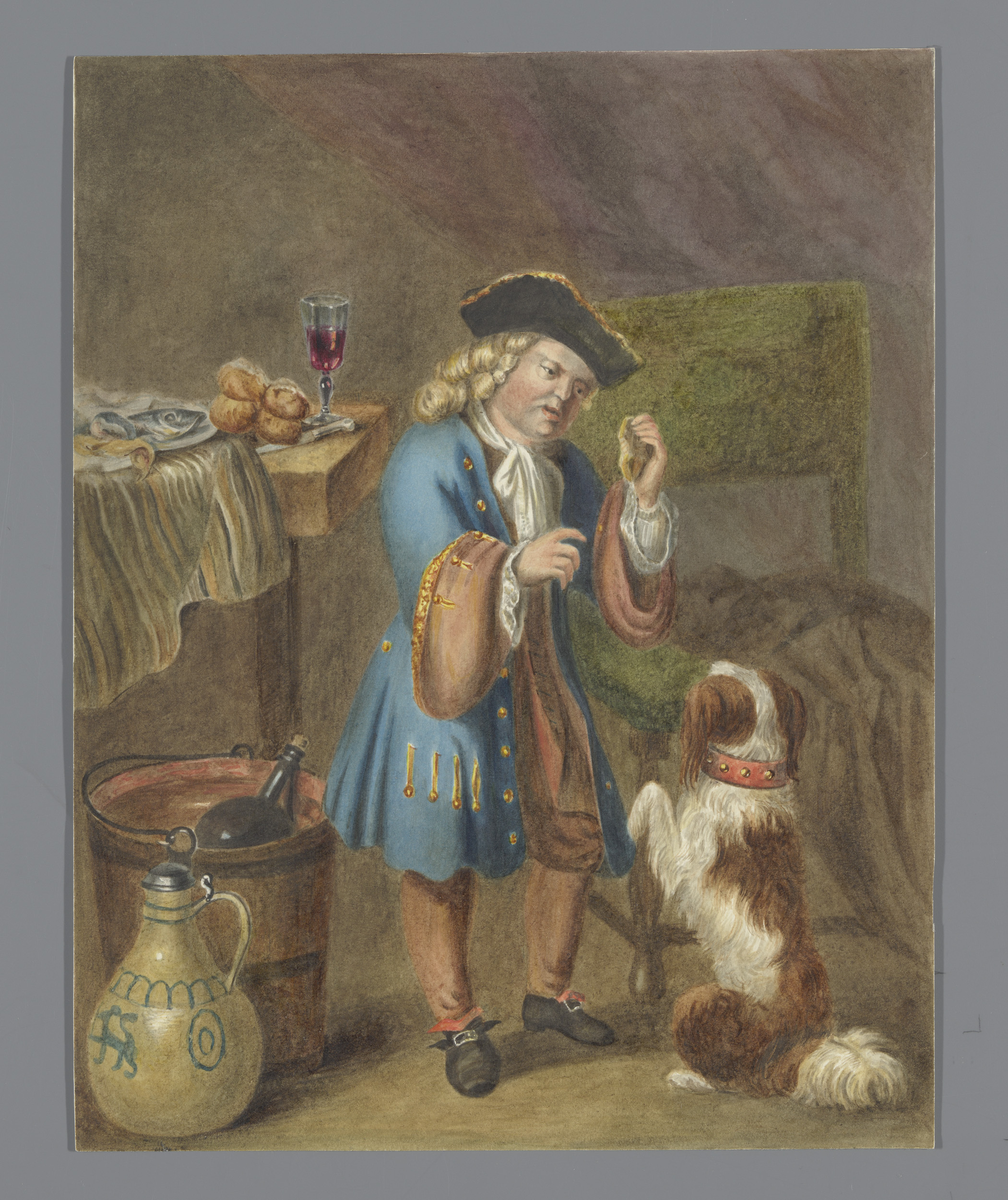 Zittende boer met kruik