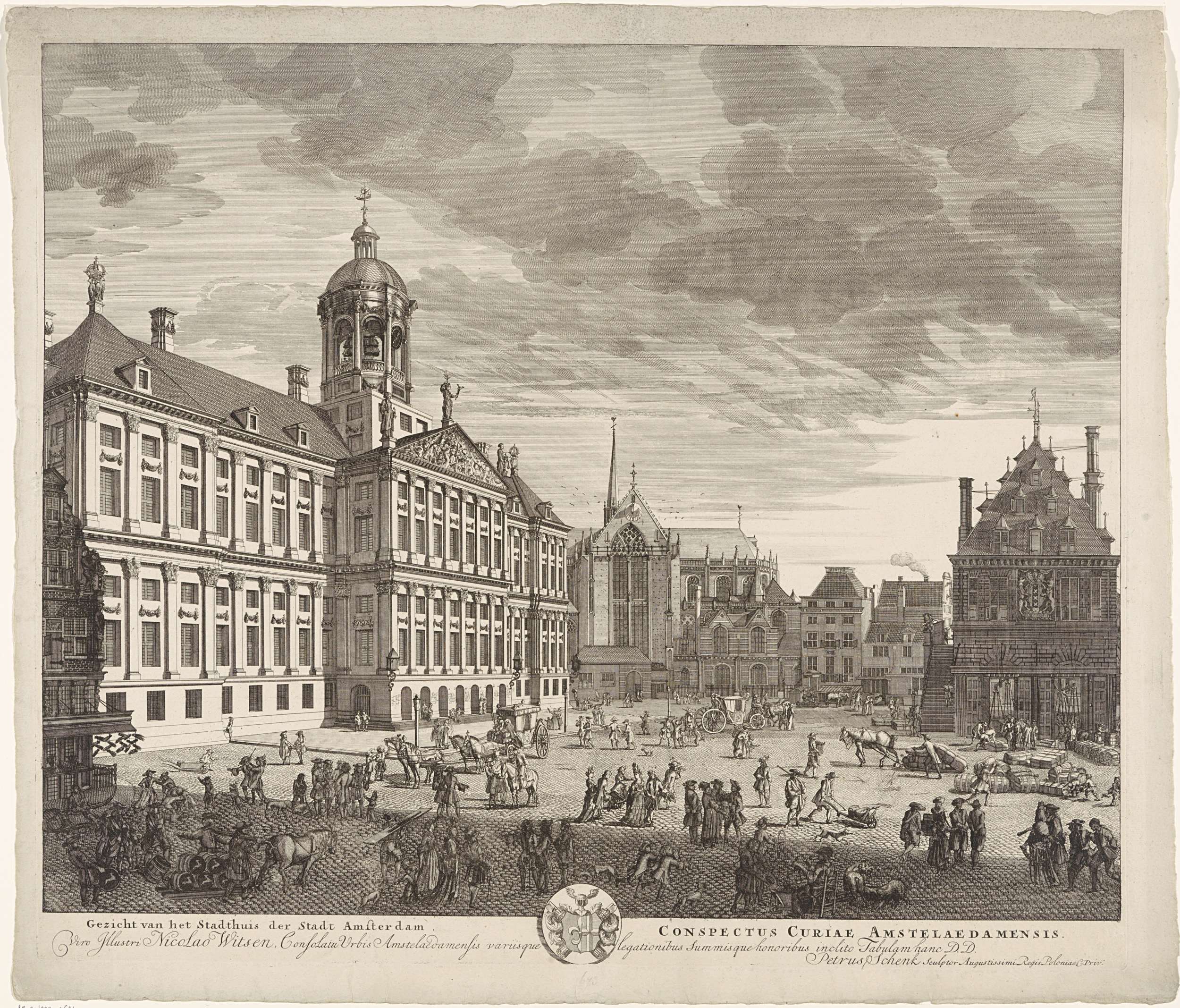 Gezicht op het stadhuis op de Dam te Amsterdam