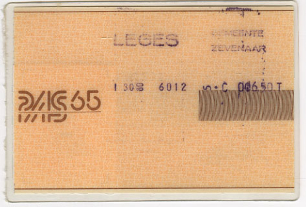 Legitimatiebewijs 'Pas 65 ' van gelamineerd papier o...