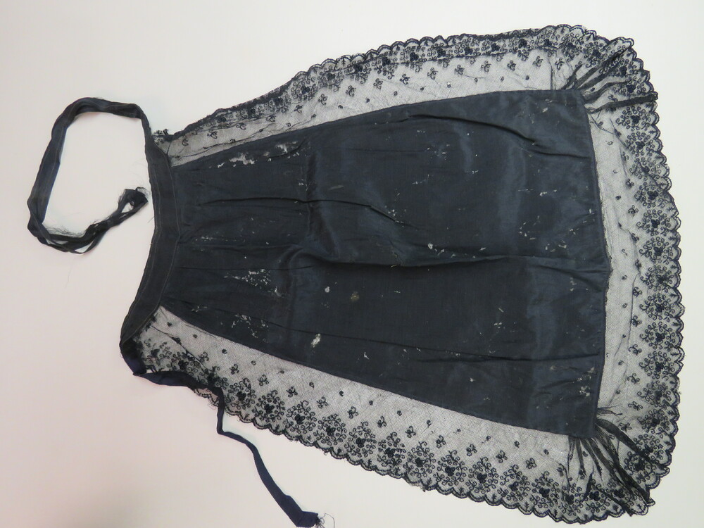schort van zwarte stof en zwarte kant, geassocieerd ...