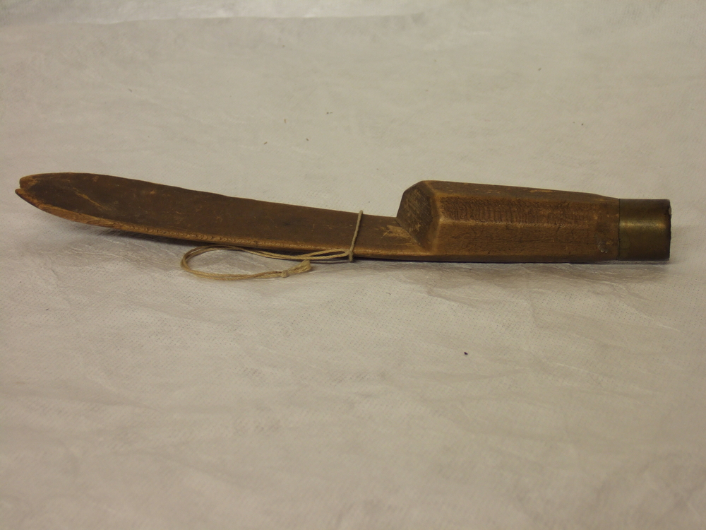 mes van hout, spatelvormig met geelkoperen ring, gea...