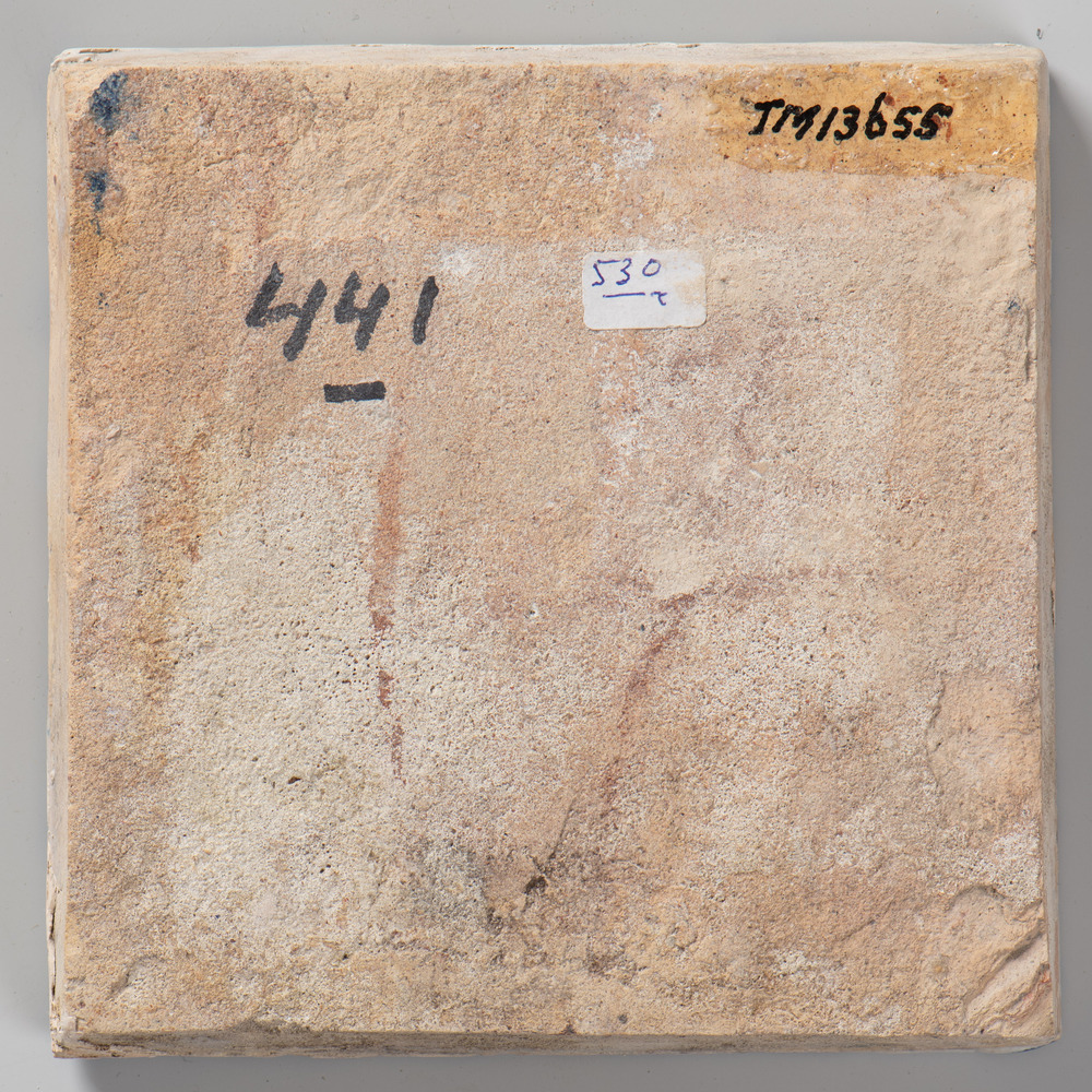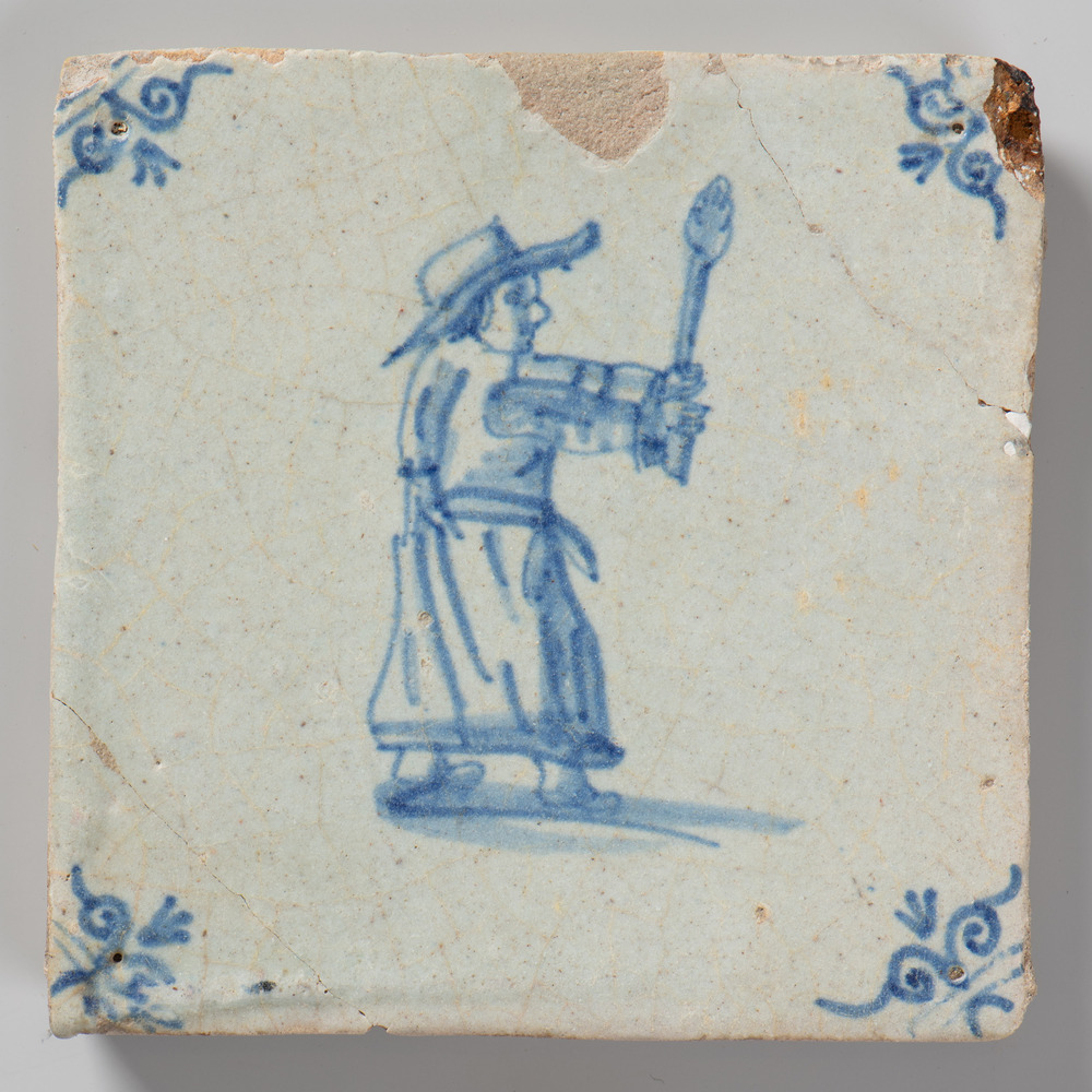 tegel van aardewerk met tinglazuur, voorstellende: m...
