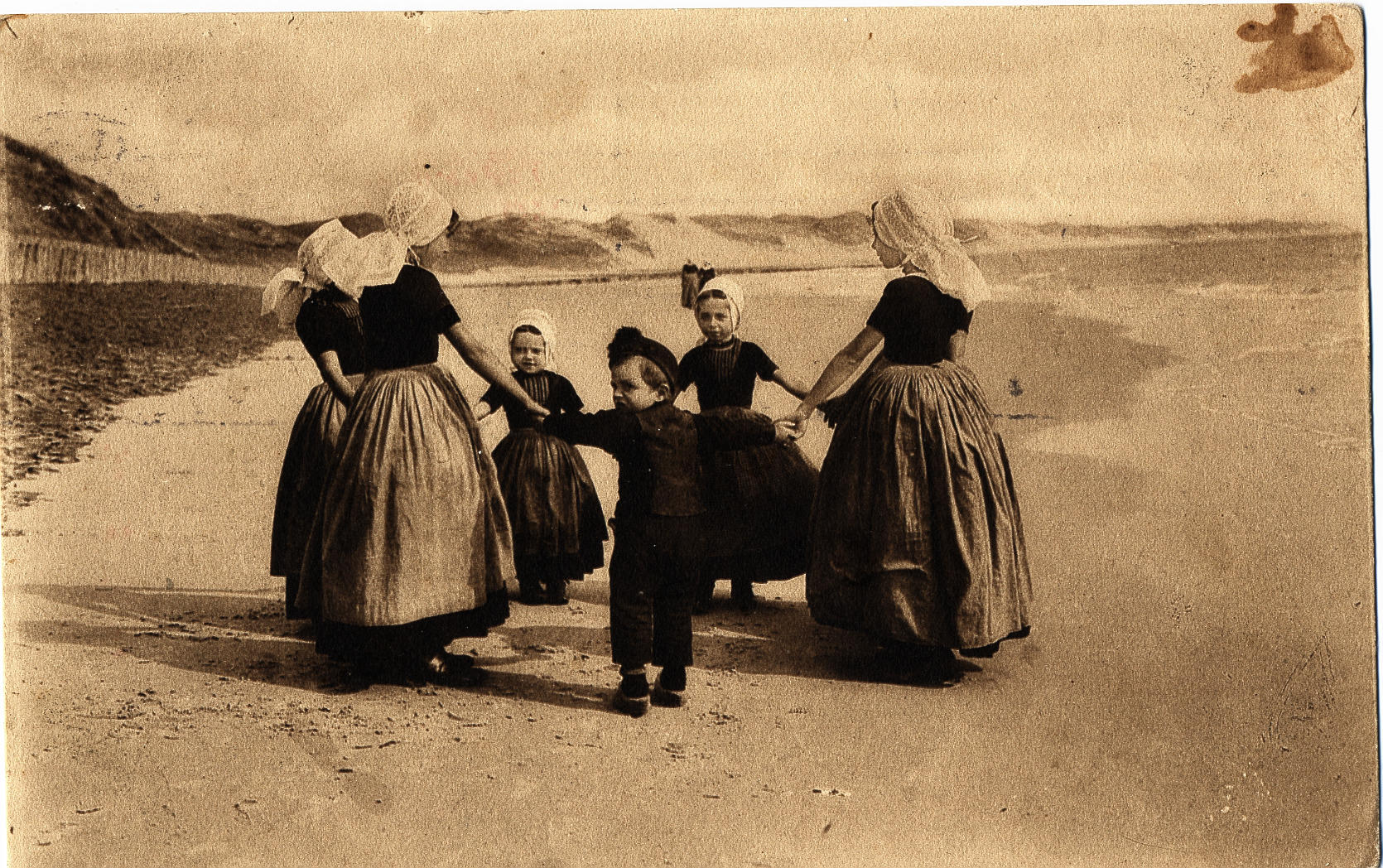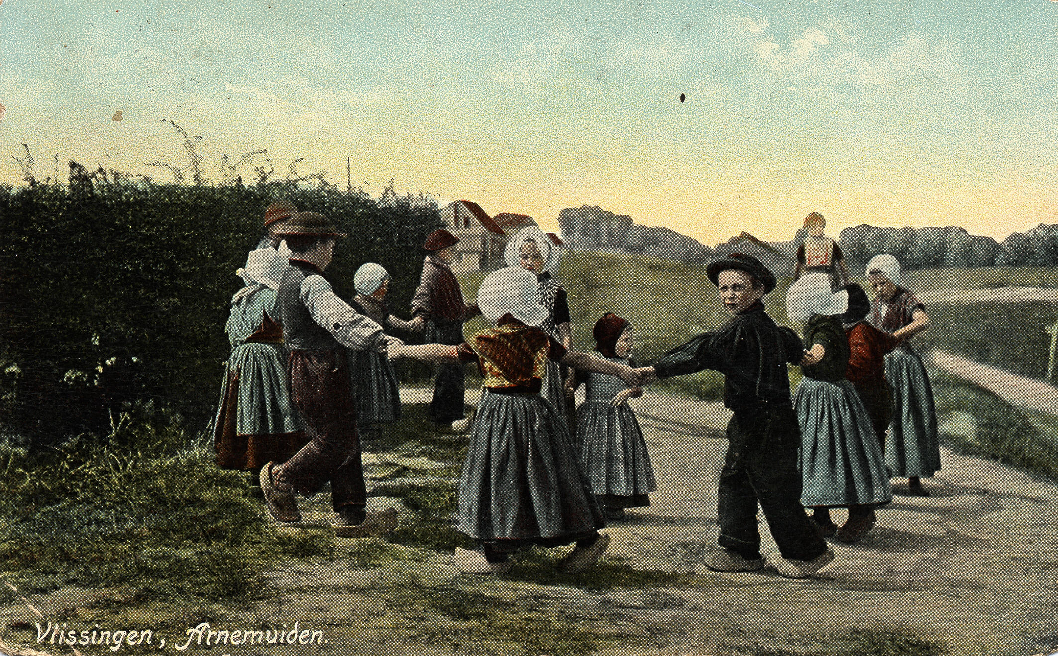 Prentbriefkaart van kinderen in streekdracht uit Arn...