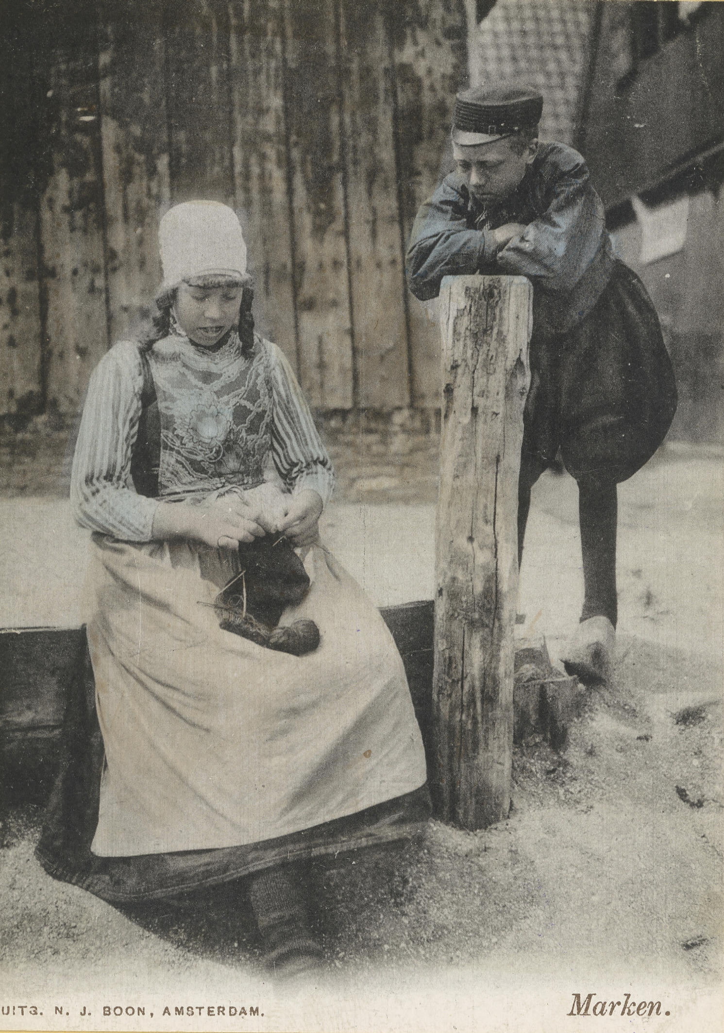 Meisje en jongen in Marker dracht, 1886–1921 (ansich...