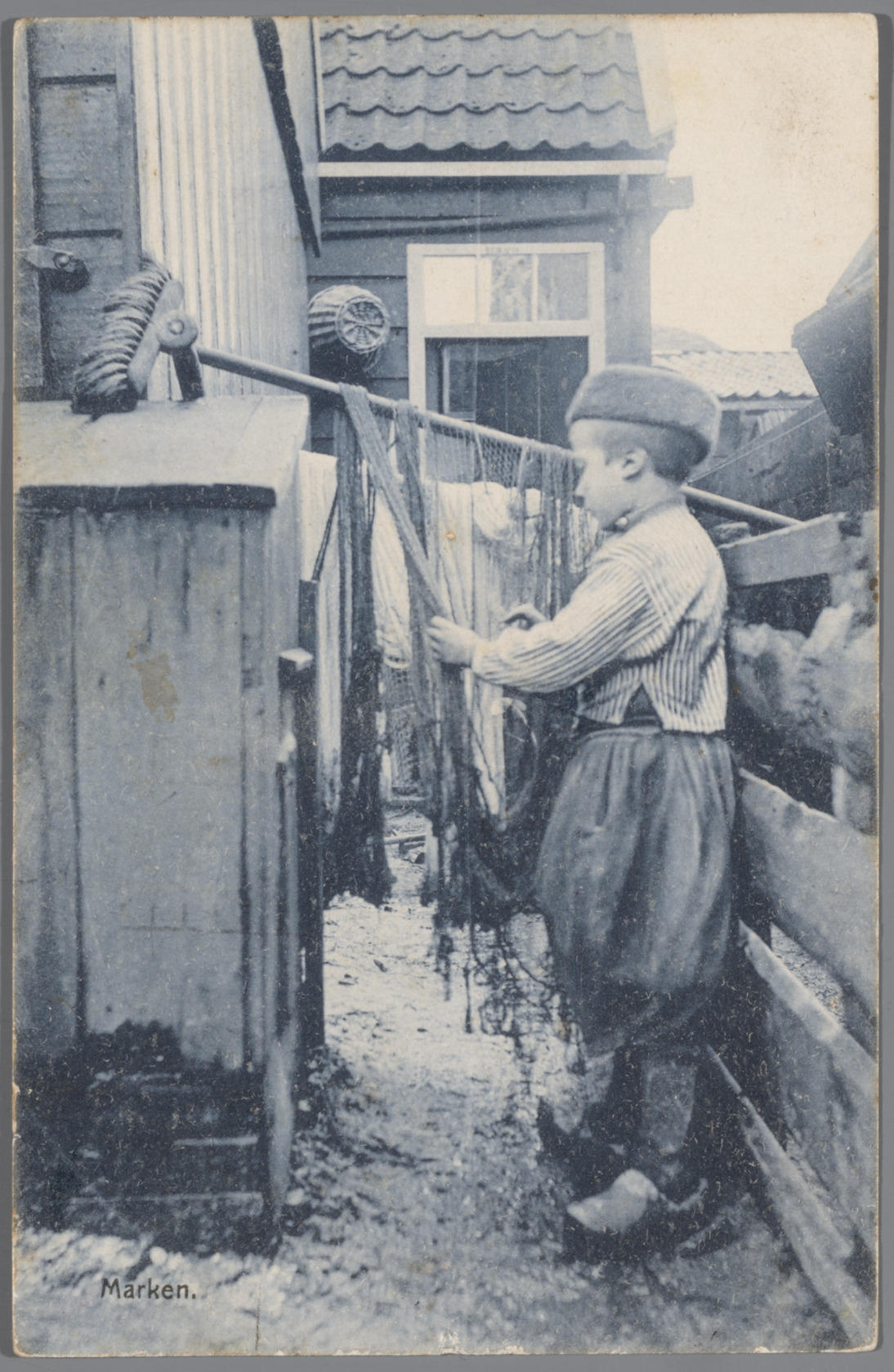 Jongen in Marker dracht met visnet (ansichtkaart)