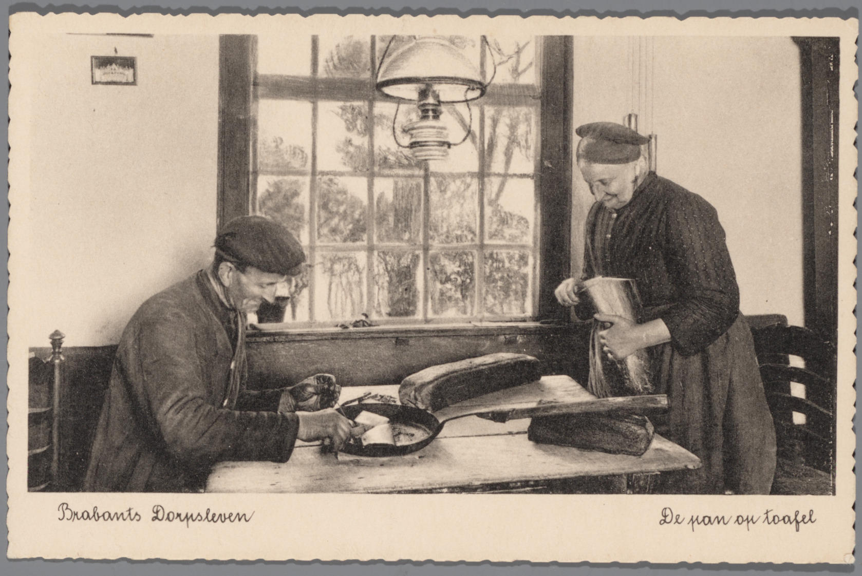 Man en vrouw in Noord-Brabantse streekdracht aan taf...