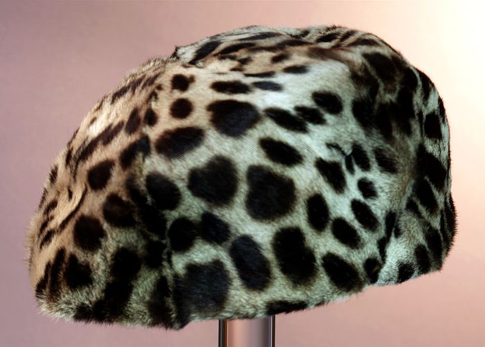 Toque, a-symmetrische muts geheel bekleed met luipaa...