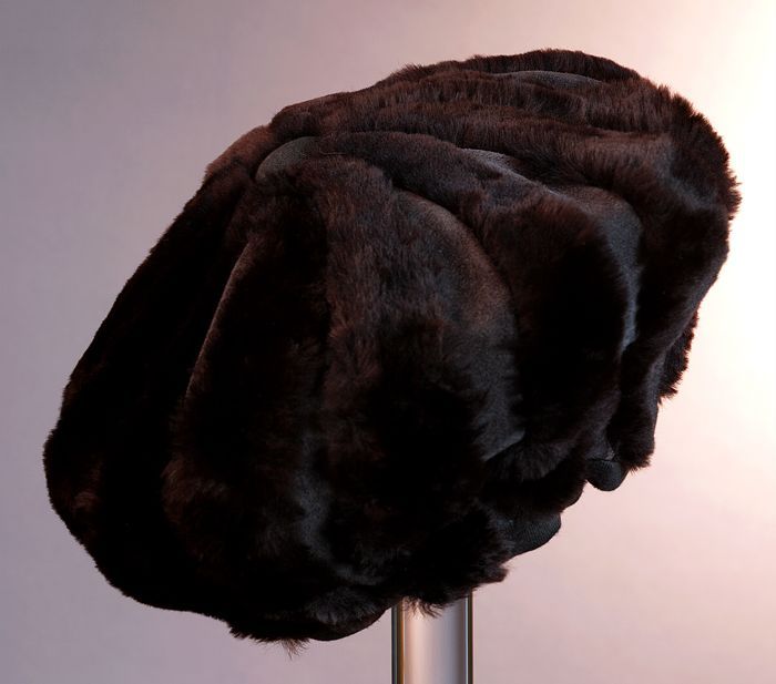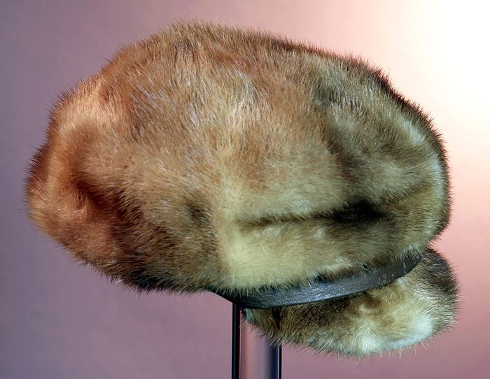 Grote ronde pet, glanzend beige-blond bont met bruin...