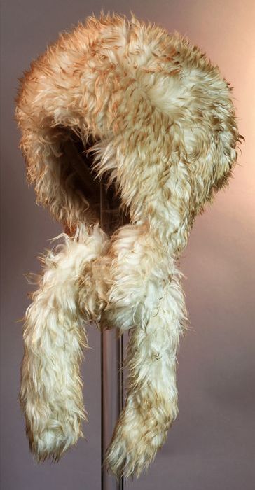 Capuchonmuts van repen langharig wit schapenbont, me...