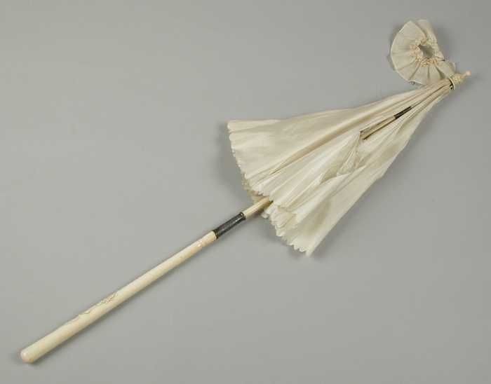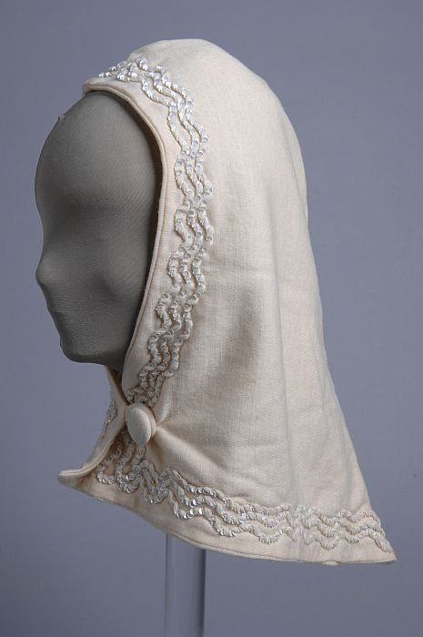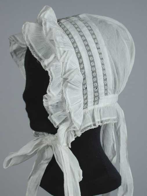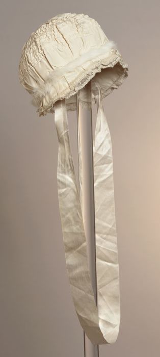 Roomwitte zijden kindermuts afgezet met kant en wit ...
