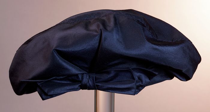 Baret, donkerblauwe zijde, voor geplooid met plat st...