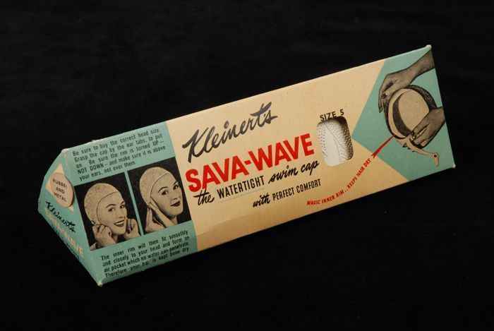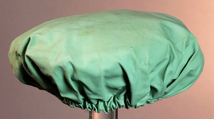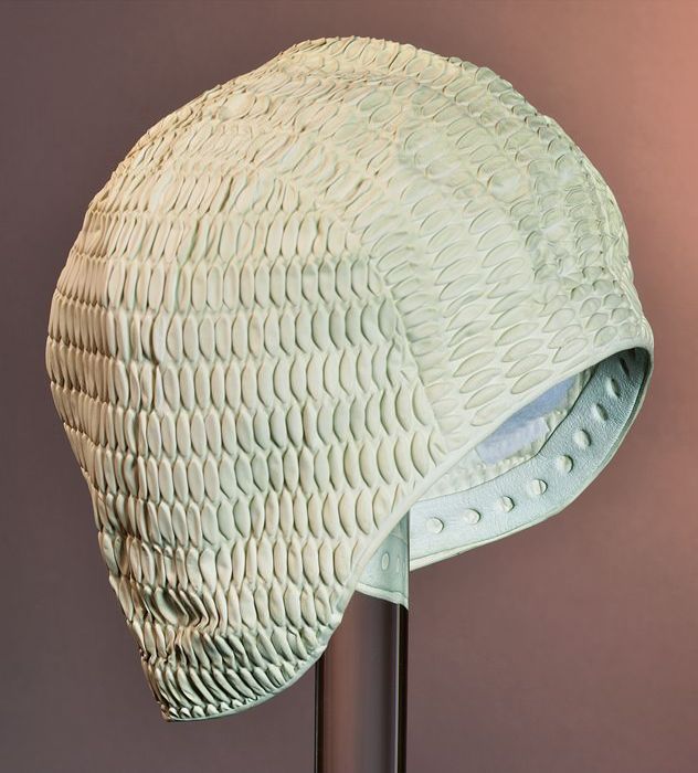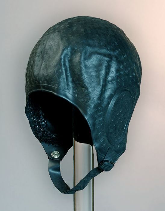 Badmuts van lichtgroen rubber (?) met textiel, elast...