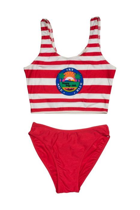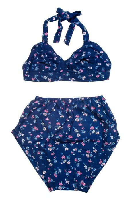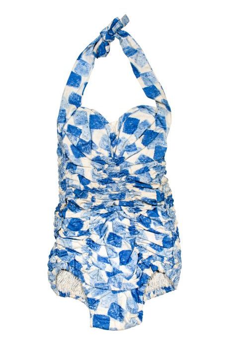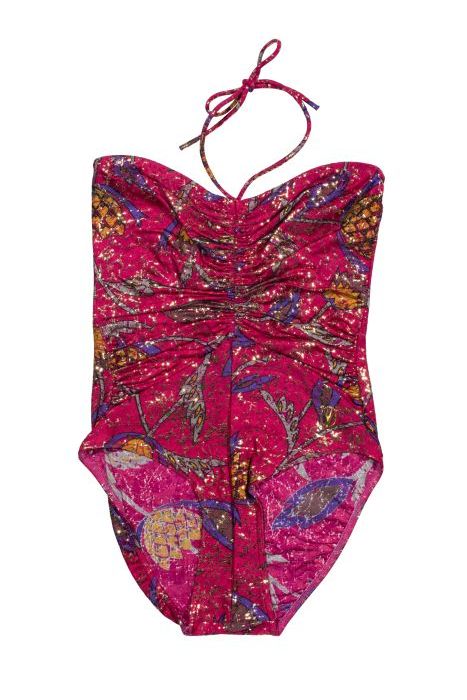 Rood/paars/grijs/goud badpak, strapless of haltermodel