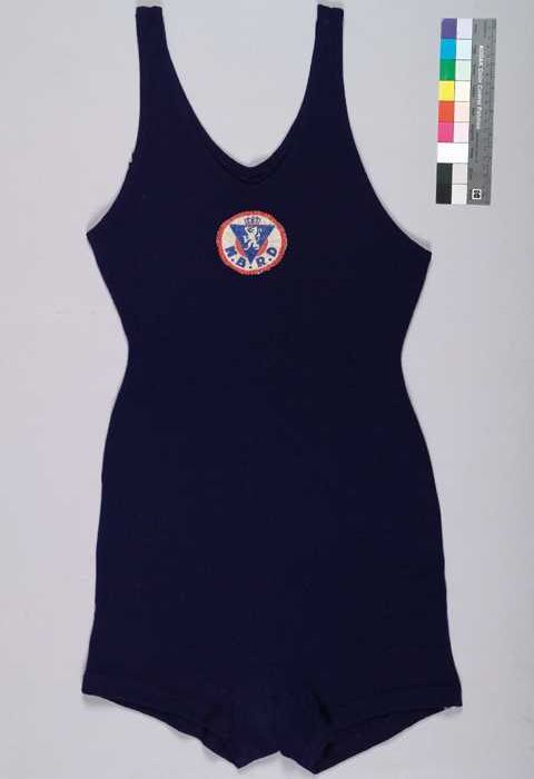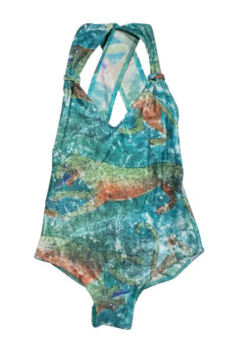 Groen/blauw/oranje glanzend badpak, "Triumph"