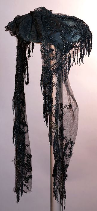 Capuchon van zwart fluweel met een rand van zwart bo...
