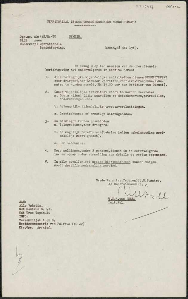 Brief van Territoriaal tevens Troepencommando Noord-...