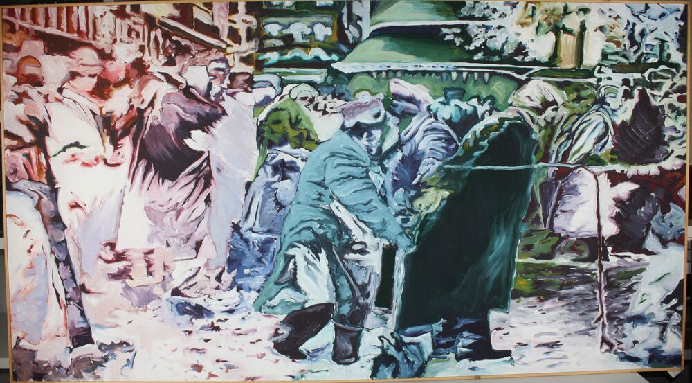 foto: Duitse officieren aan puinhopen aan achterzijd...
