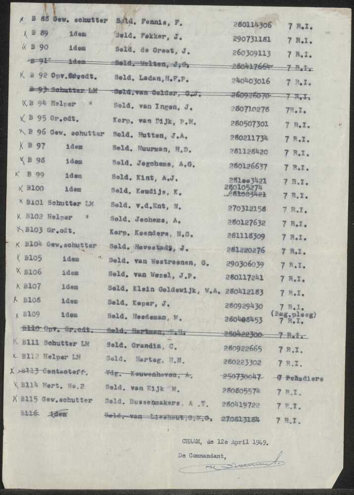 Appellijst 2e Comp. 424e Bataljon Inf.