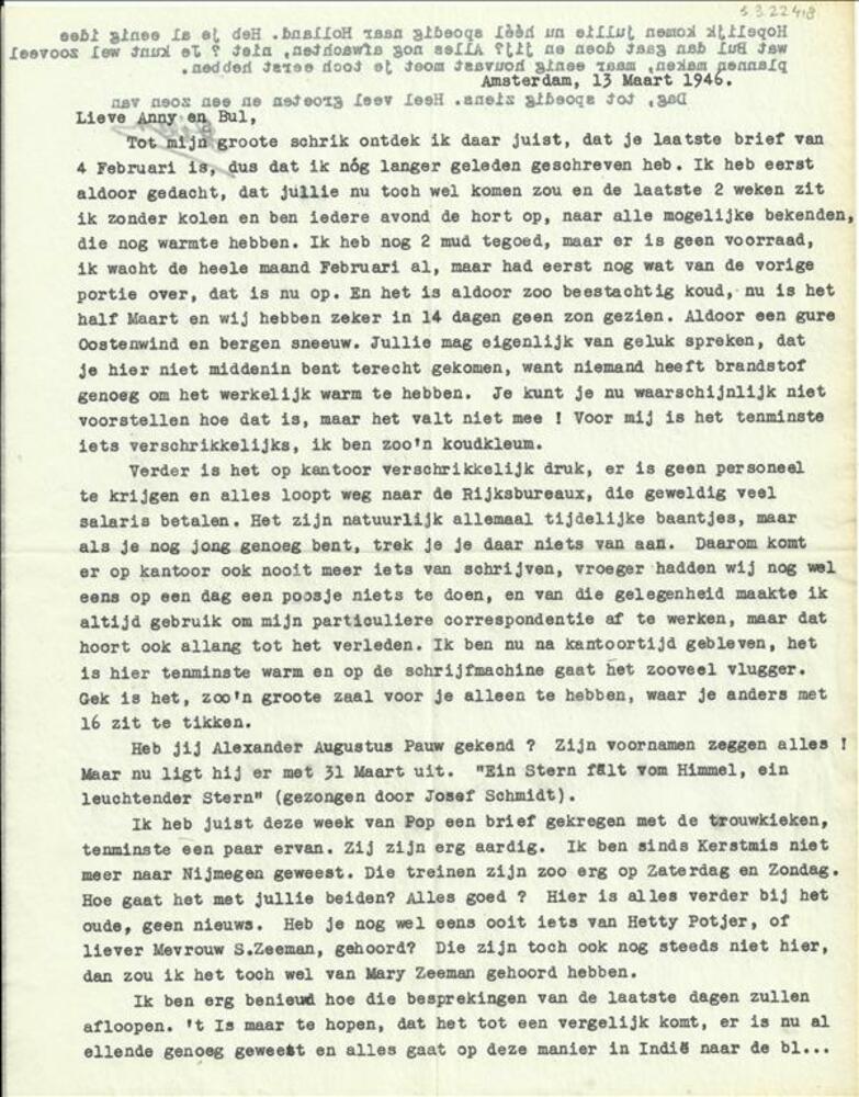 Brief Stien geschreven 13 maart 1946, aan Annie en B...