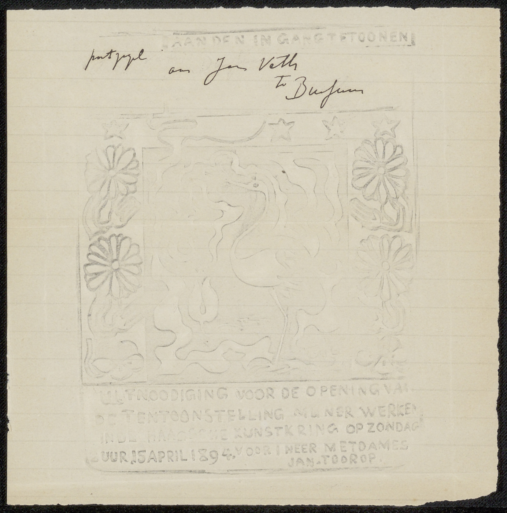 Aankondiging van een tentoonstelling van Reijer Stol...