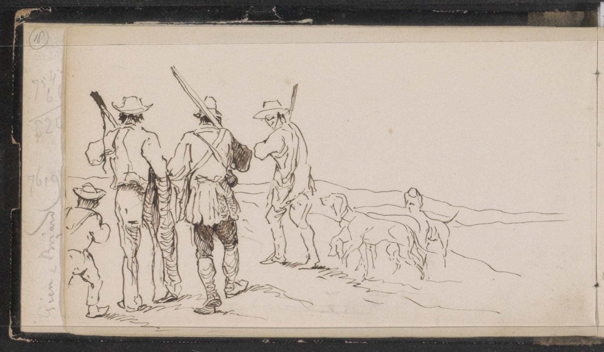 Heuvellandschap met jagers en honden