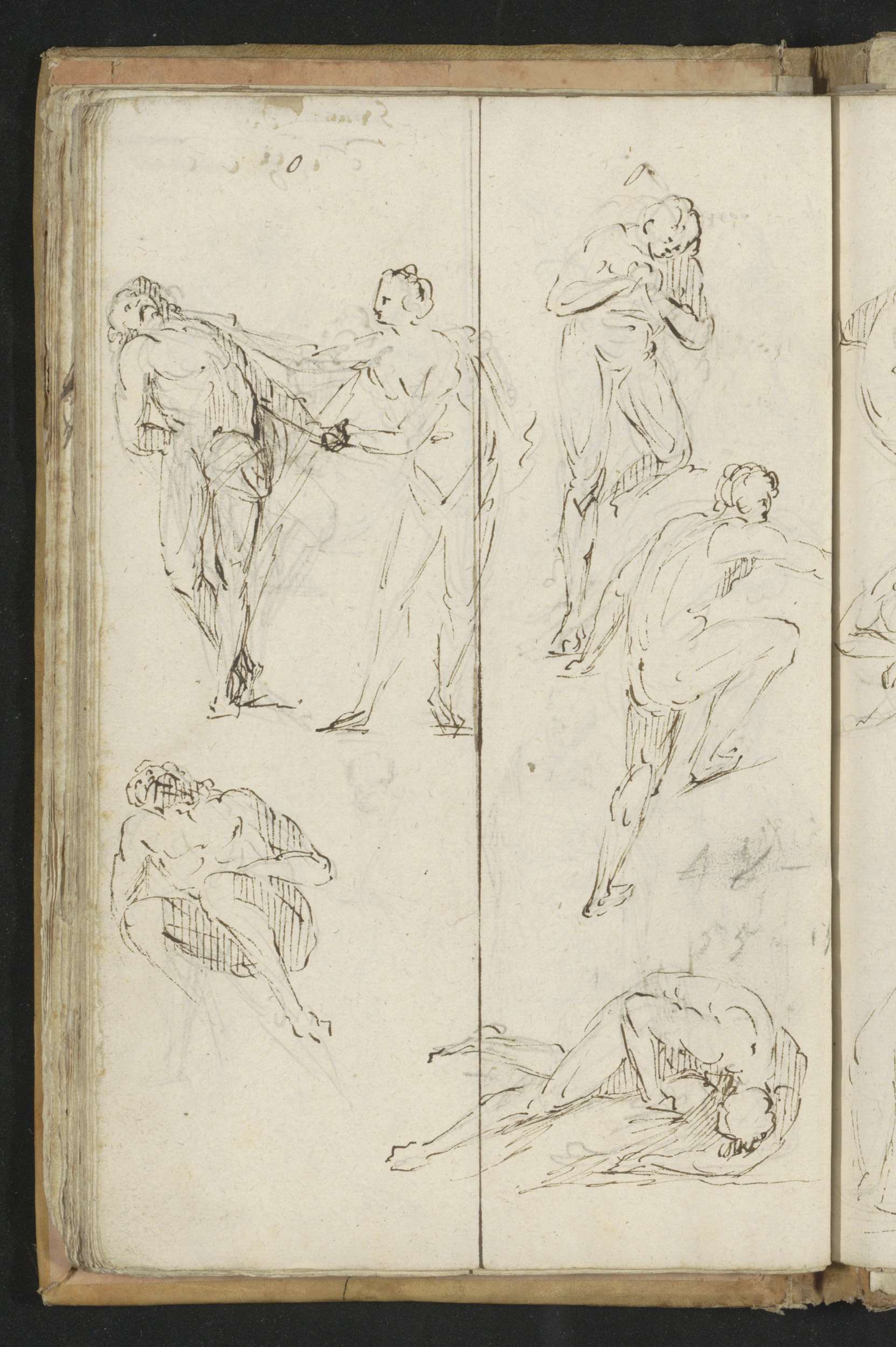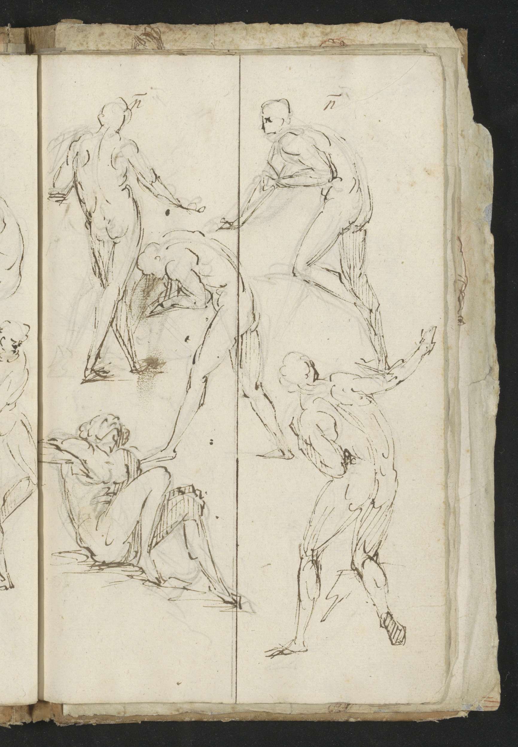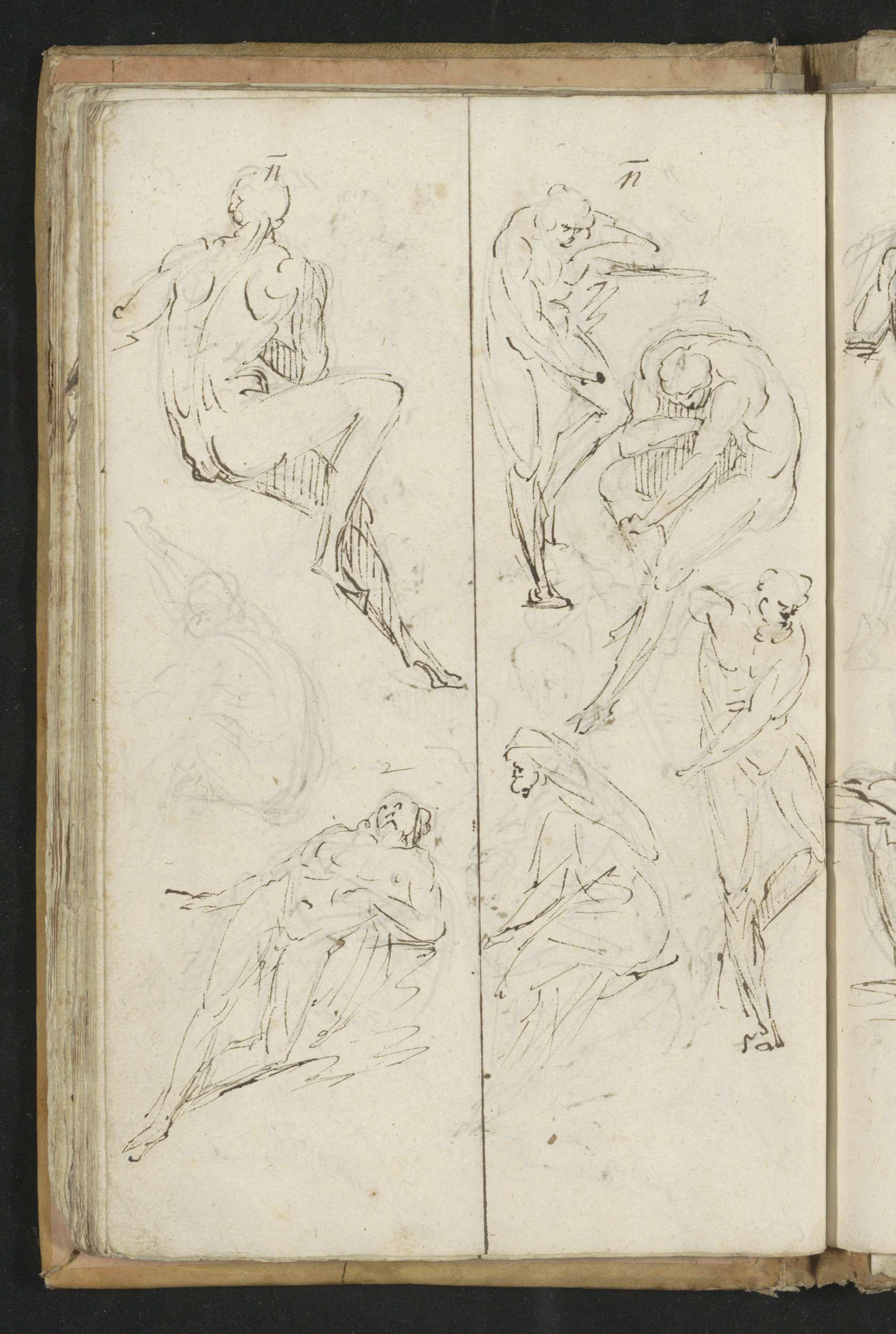 Naakte mannen in verschillende lig-, sta- en zithoud...