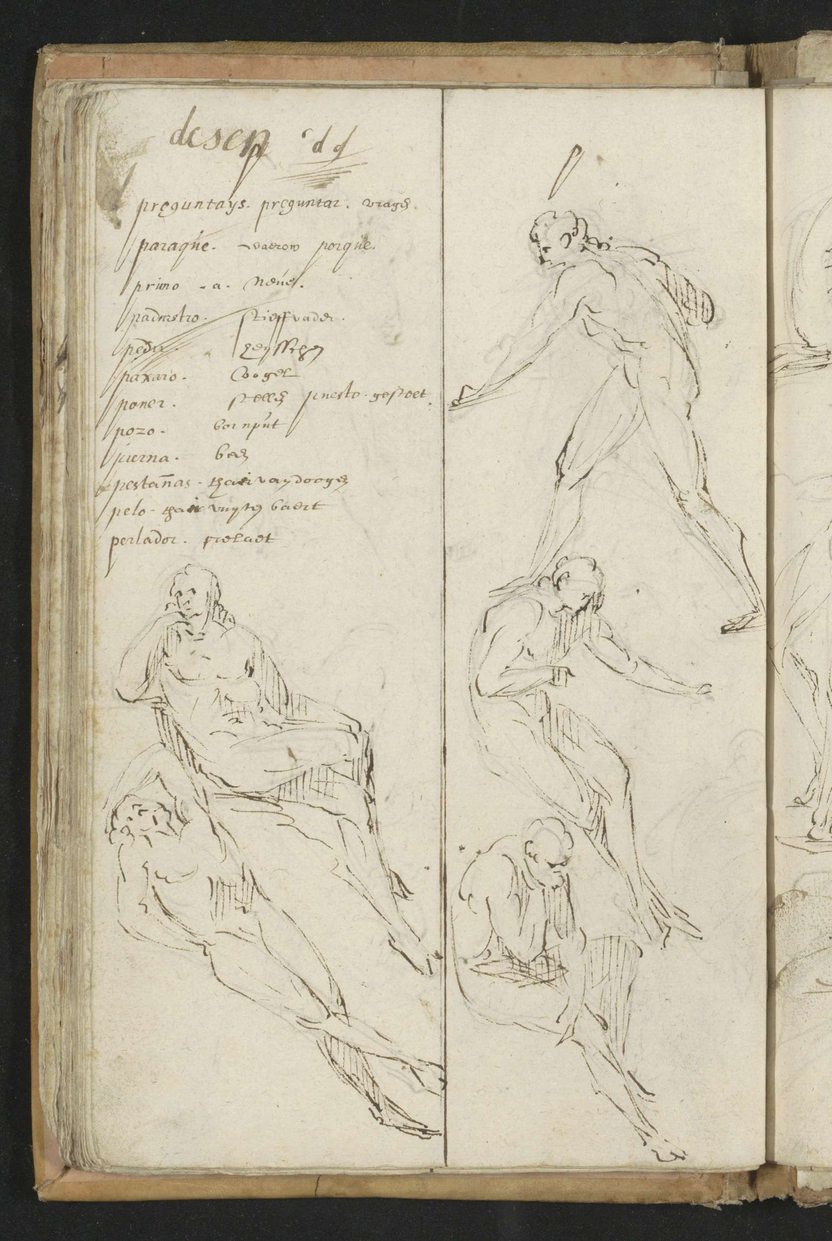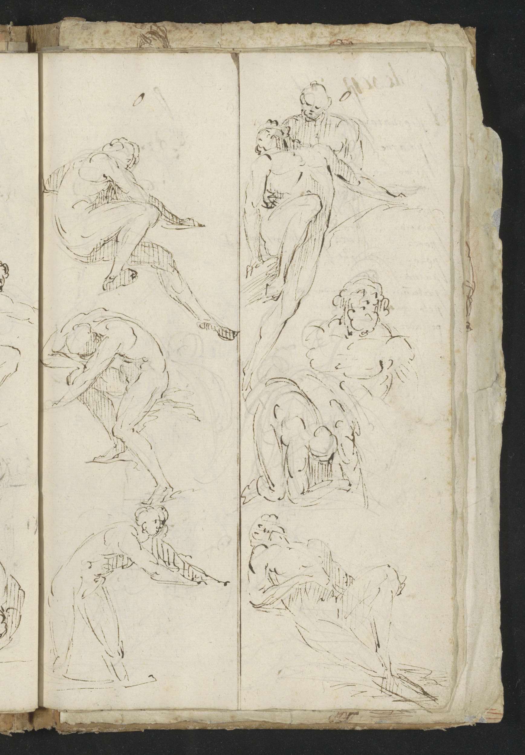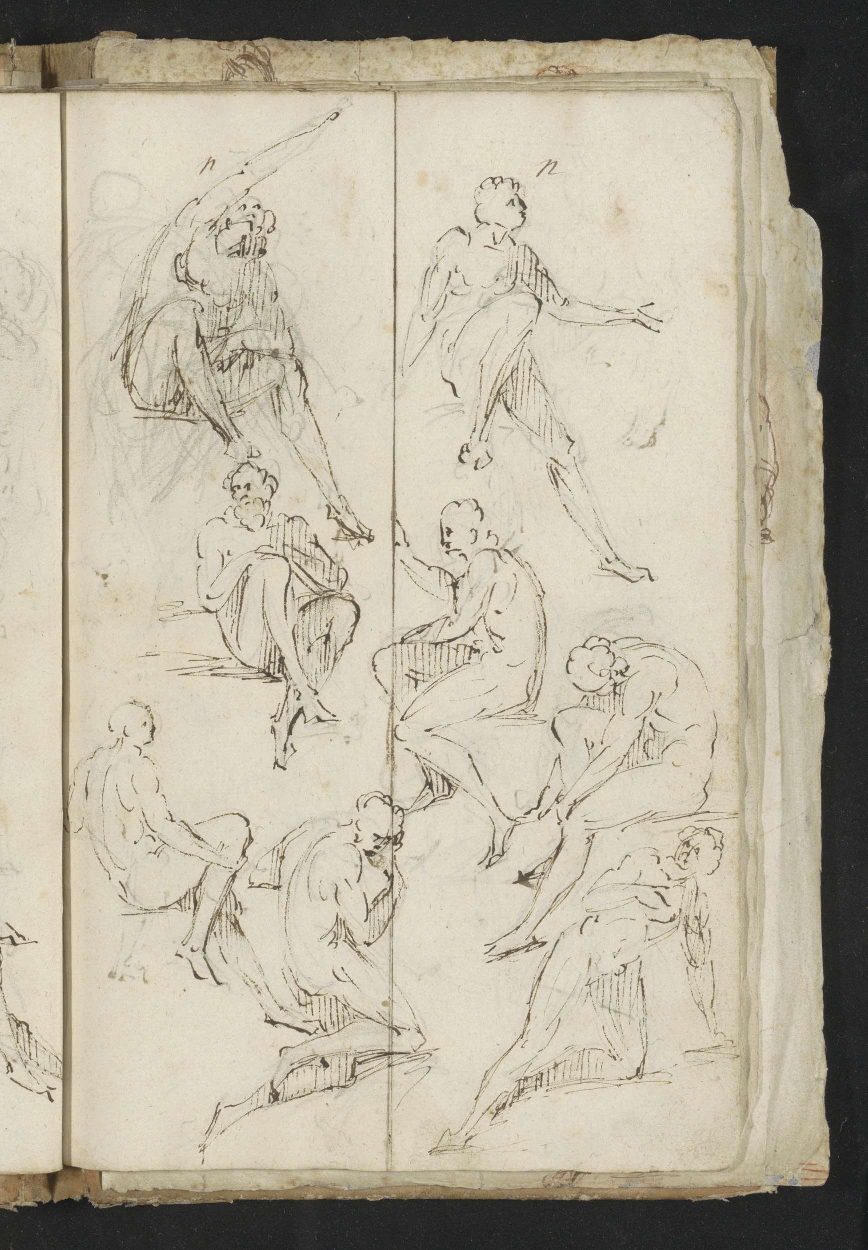 Naakte mannen in verschillende lig-, sta- en zithoud...
