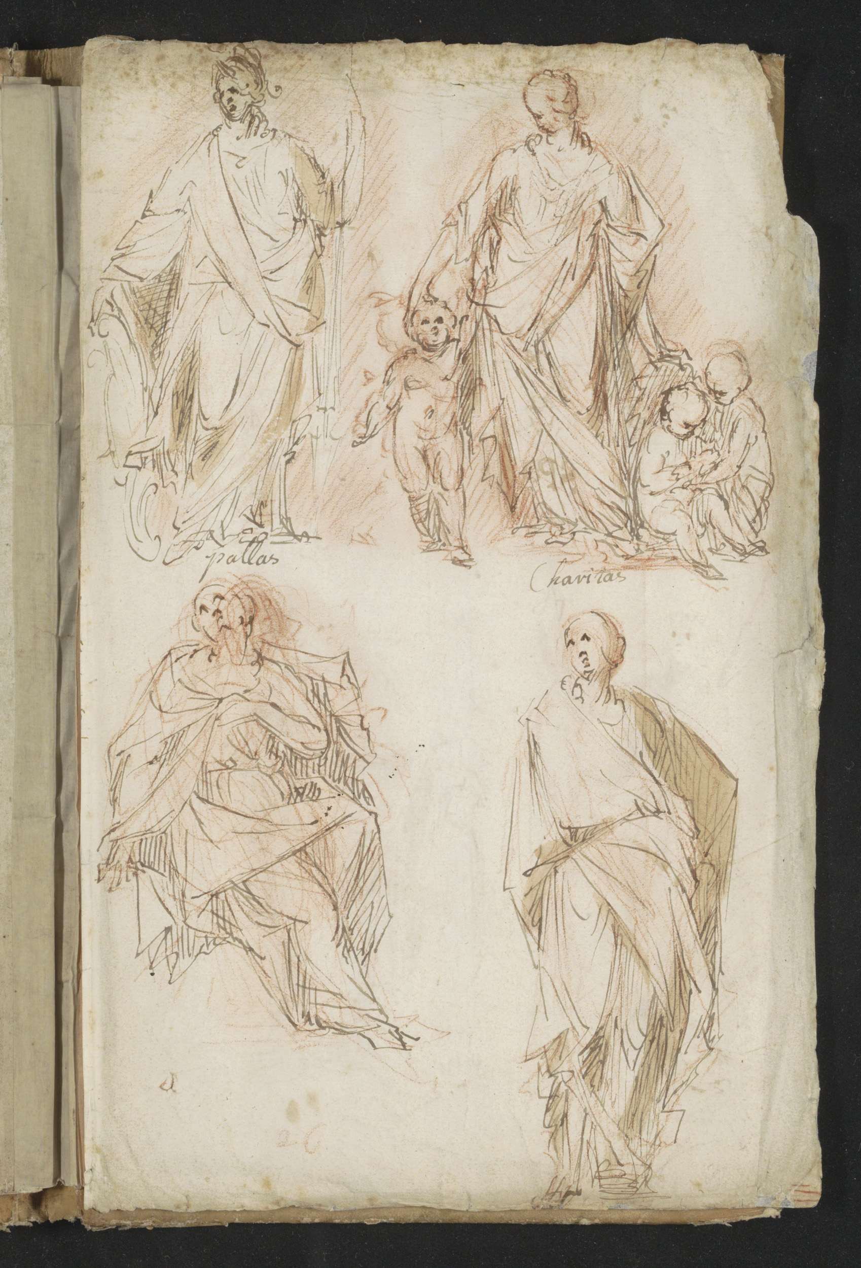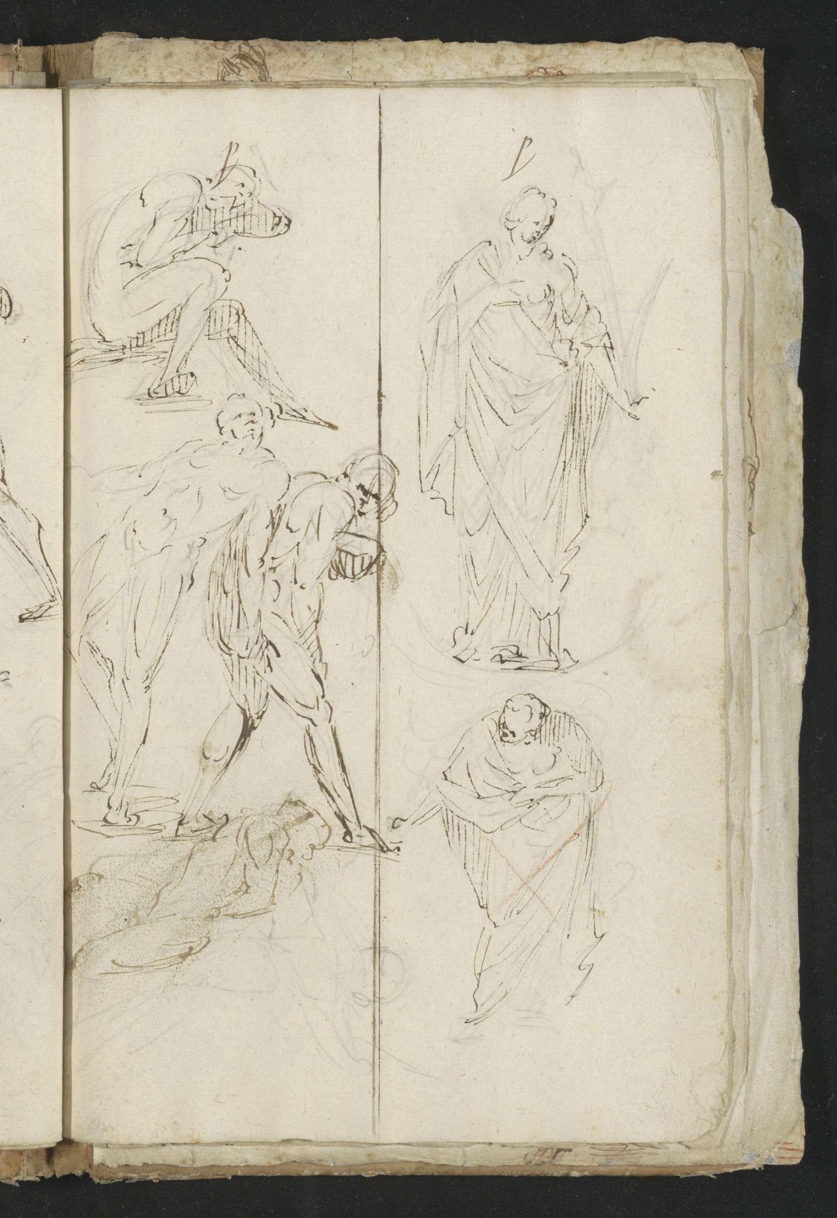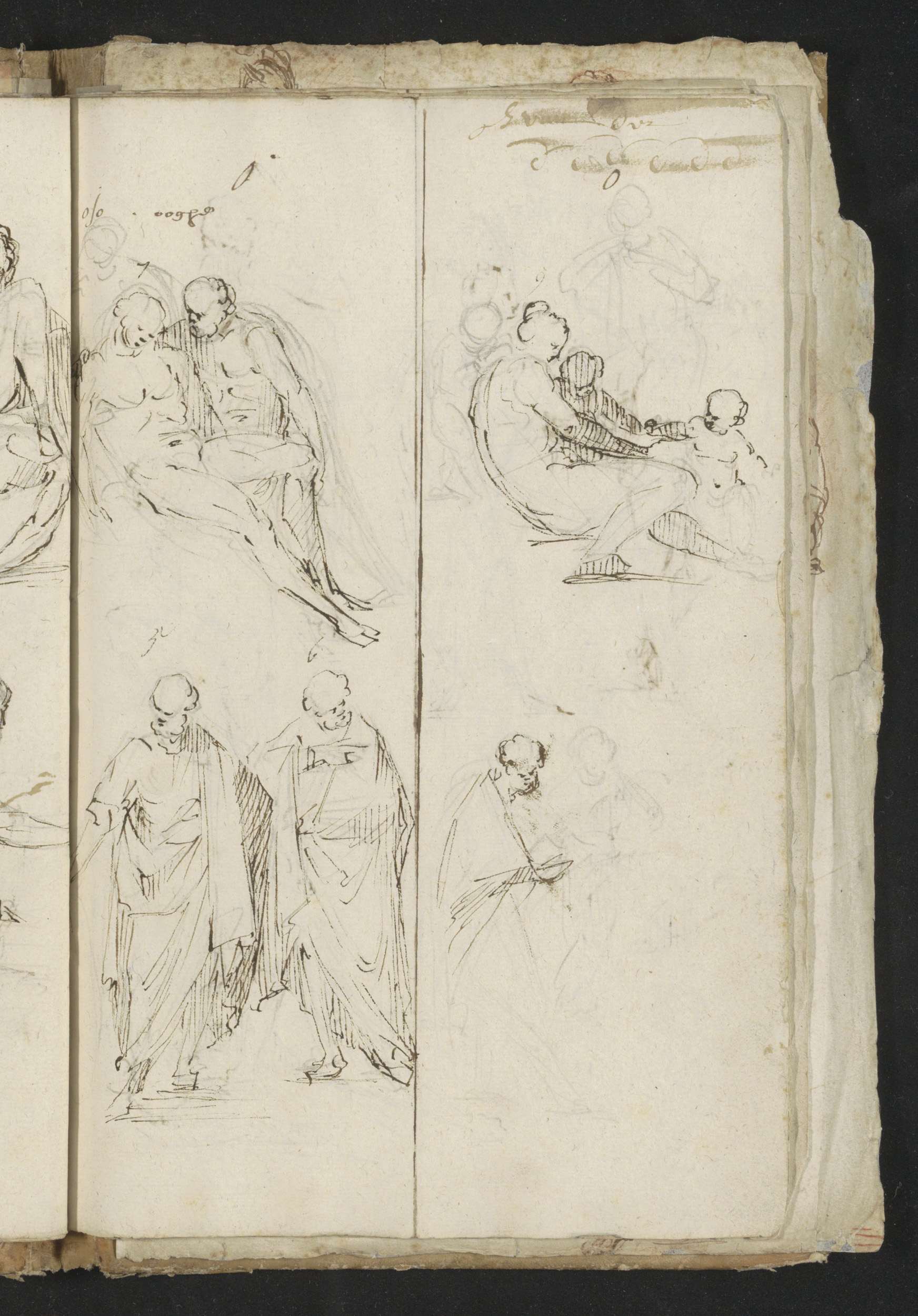 Liefdespaar, mannen in toga en een zittende naakte v...