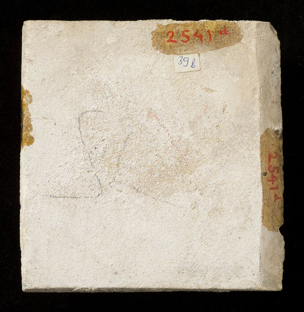 Tegel van keramiek met tinglazuur, voorstellende: or...