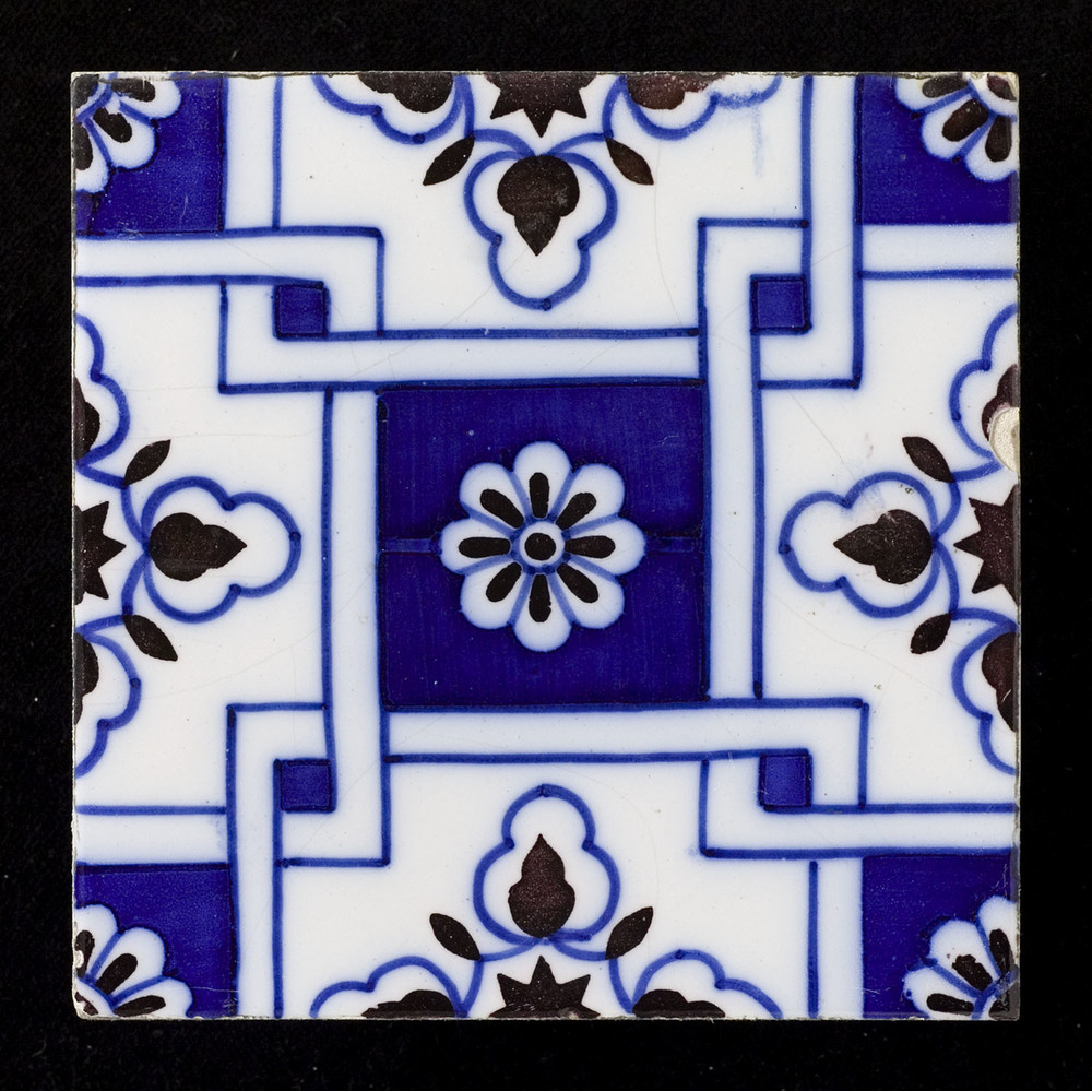 Tegel in reliëf, met voorstelling: Gestileerde lauwe...
