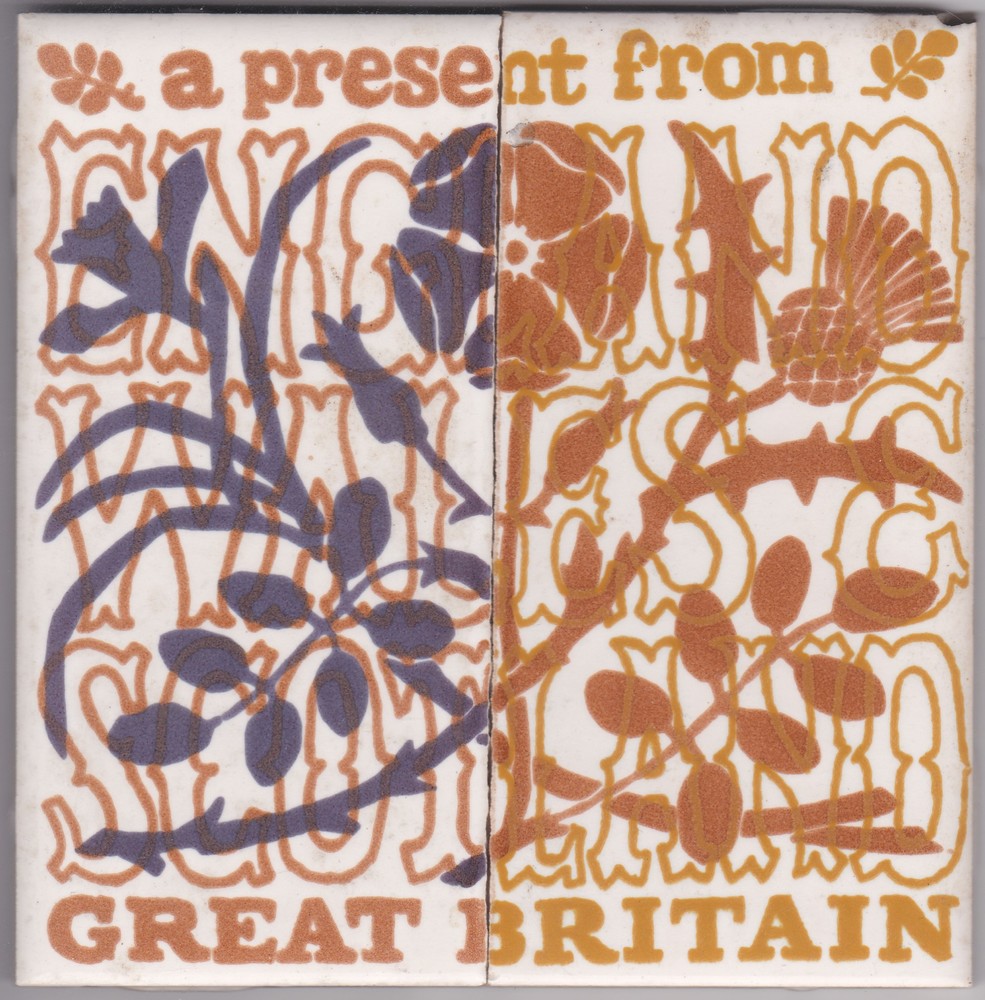 Tegel in zeefdruk, met voorstelling: twee halve proe...