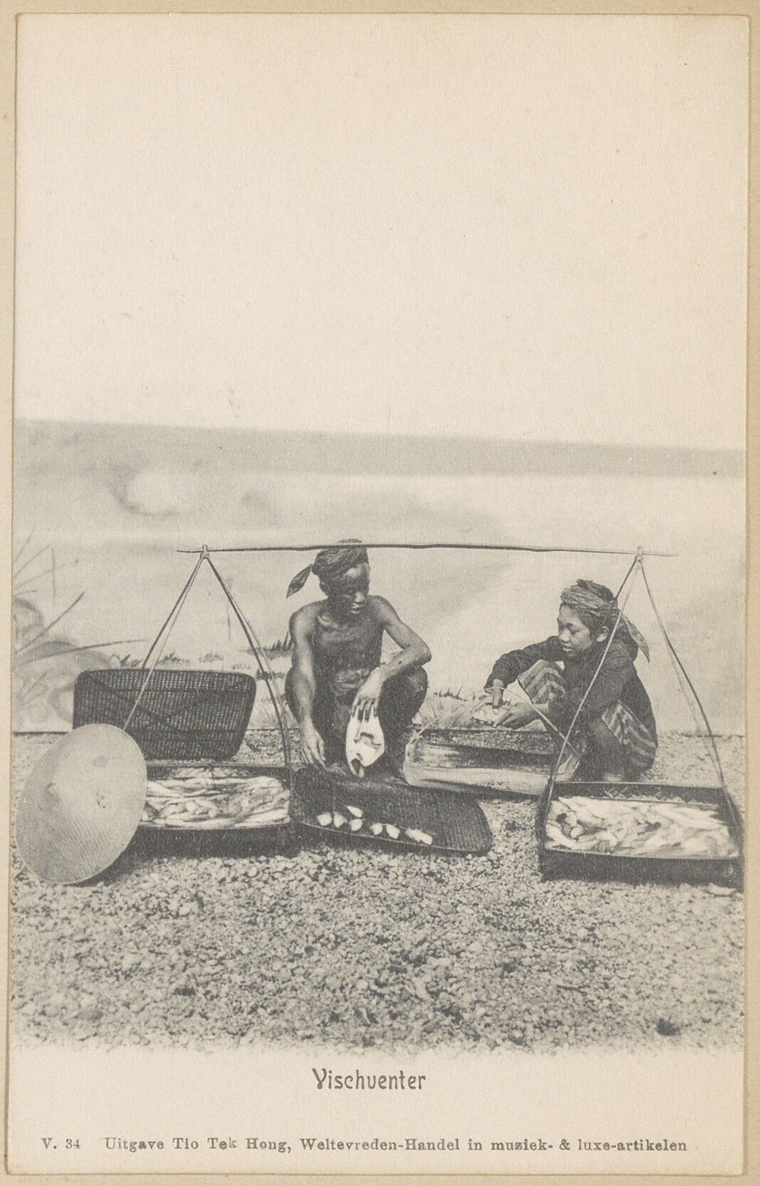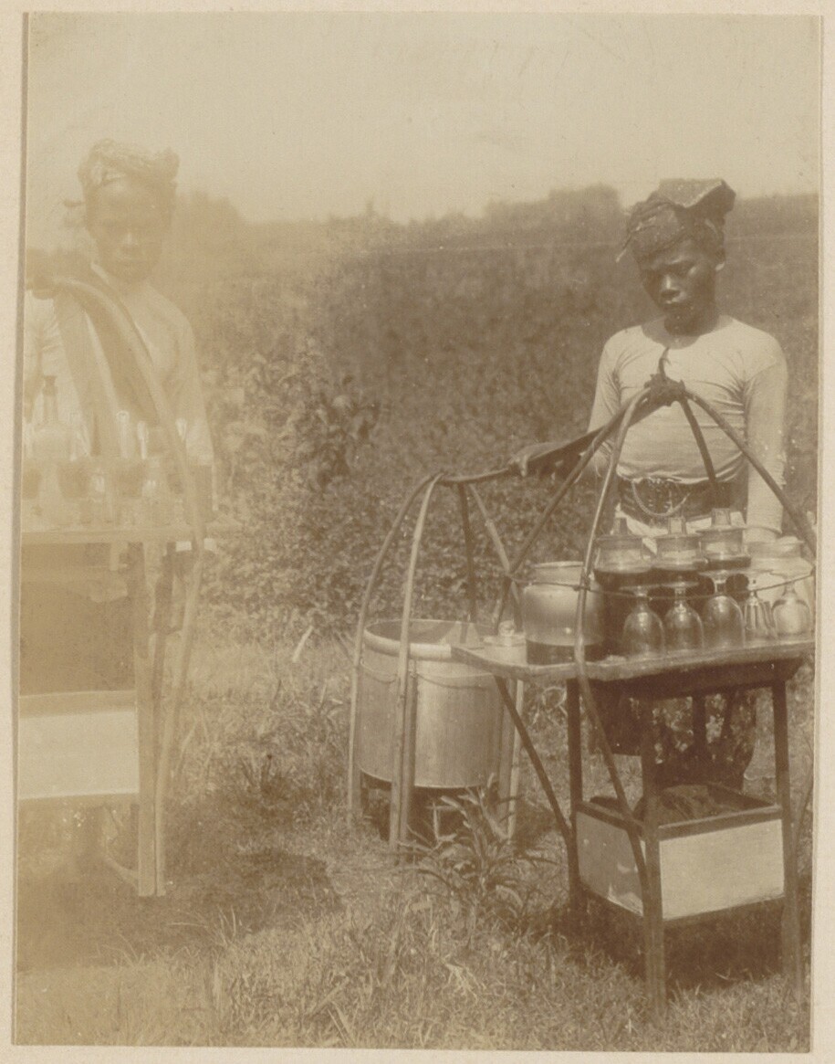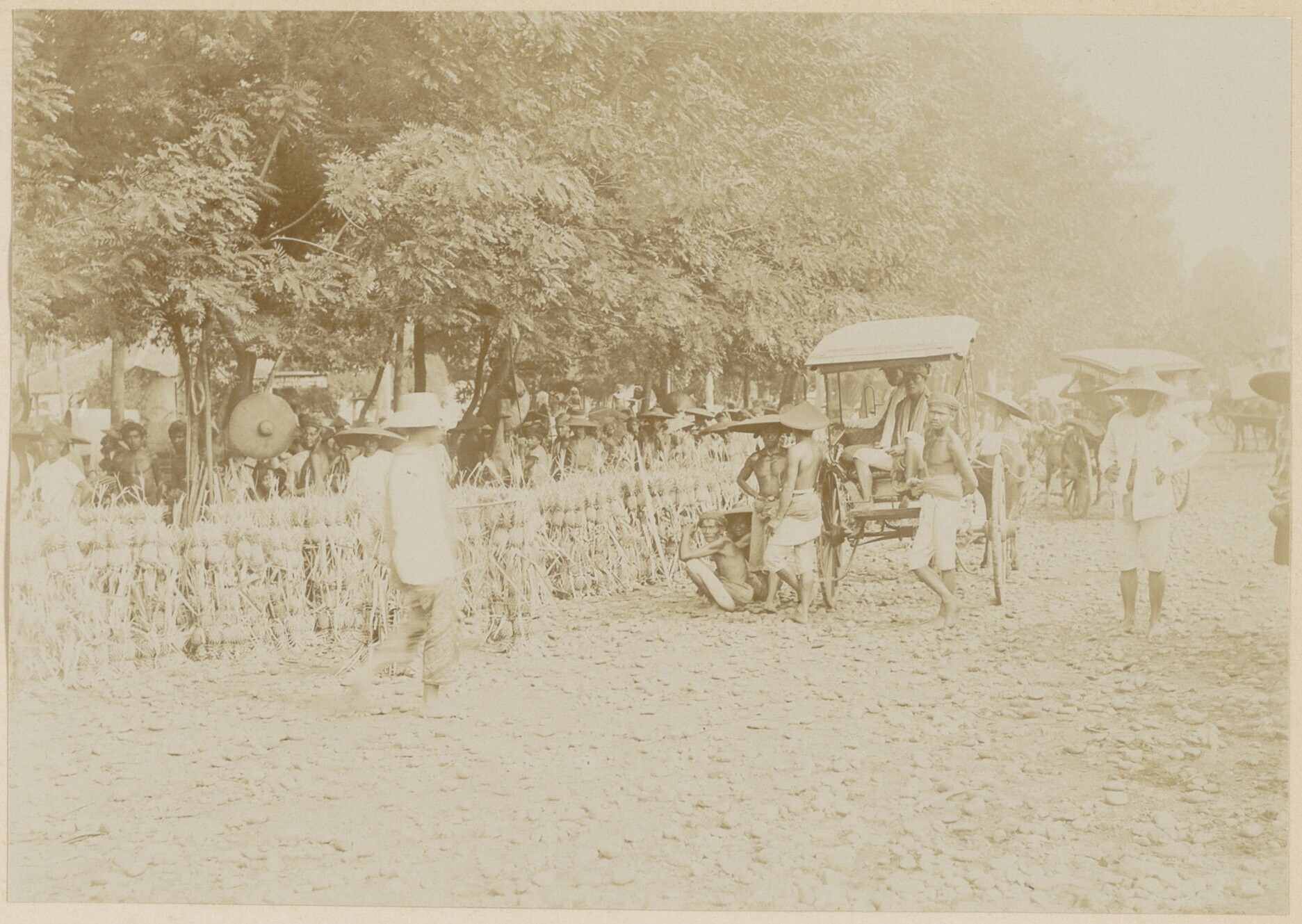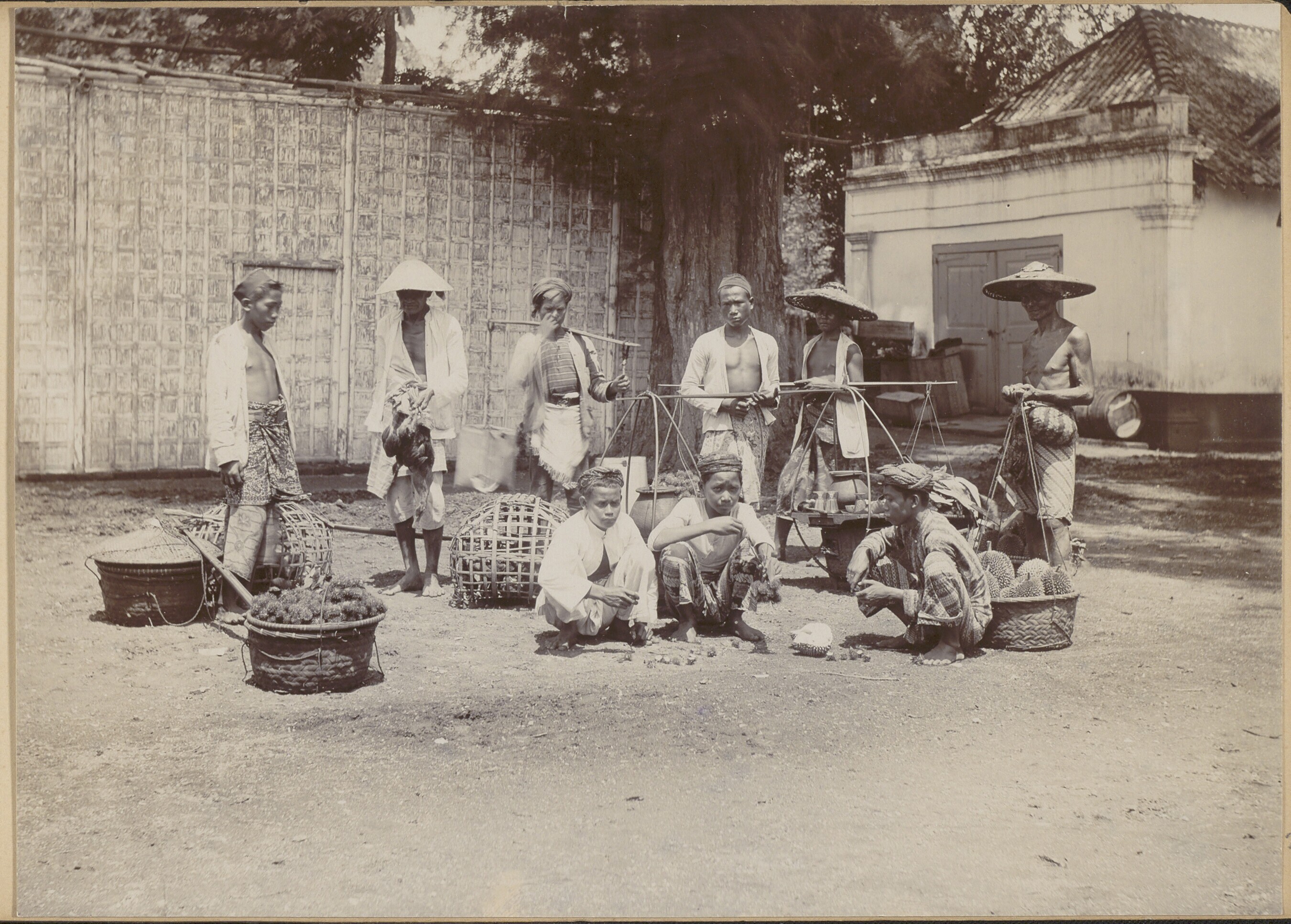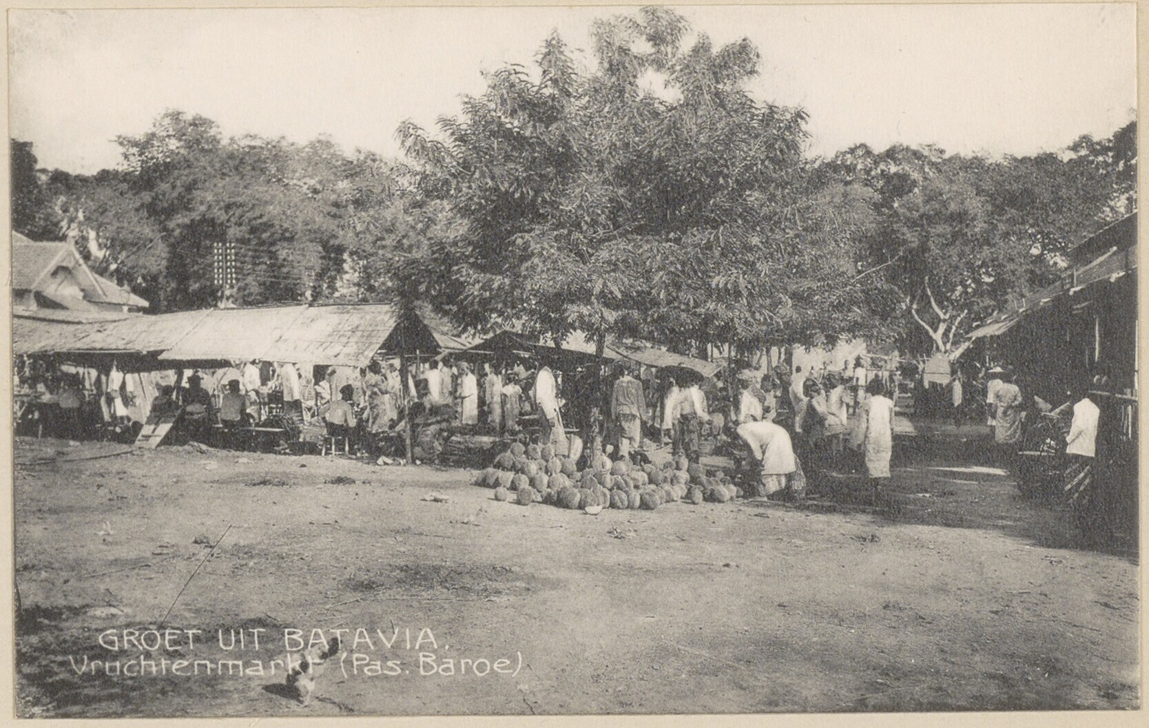 Mensen op vruchtenmarkt in Batavia