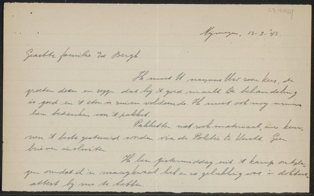 Brief van H.P.J. Smeets, Driehuizerweg 79, Nijmegen.