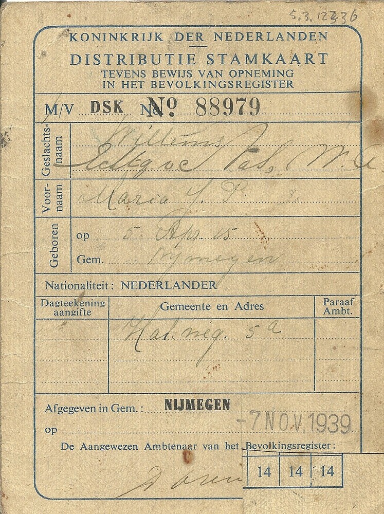 Distributiestamkaart op naam van M.J.P. Willems-Nas