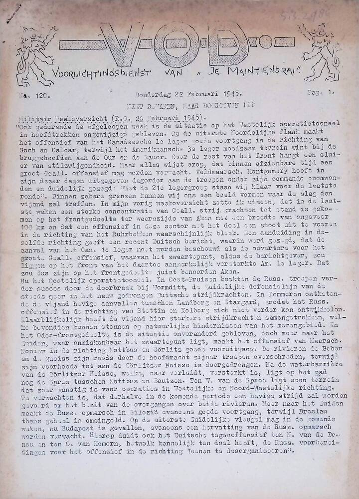 V.O.D. Voorlichtingsdienst van Je Maintiendrai, No. ...