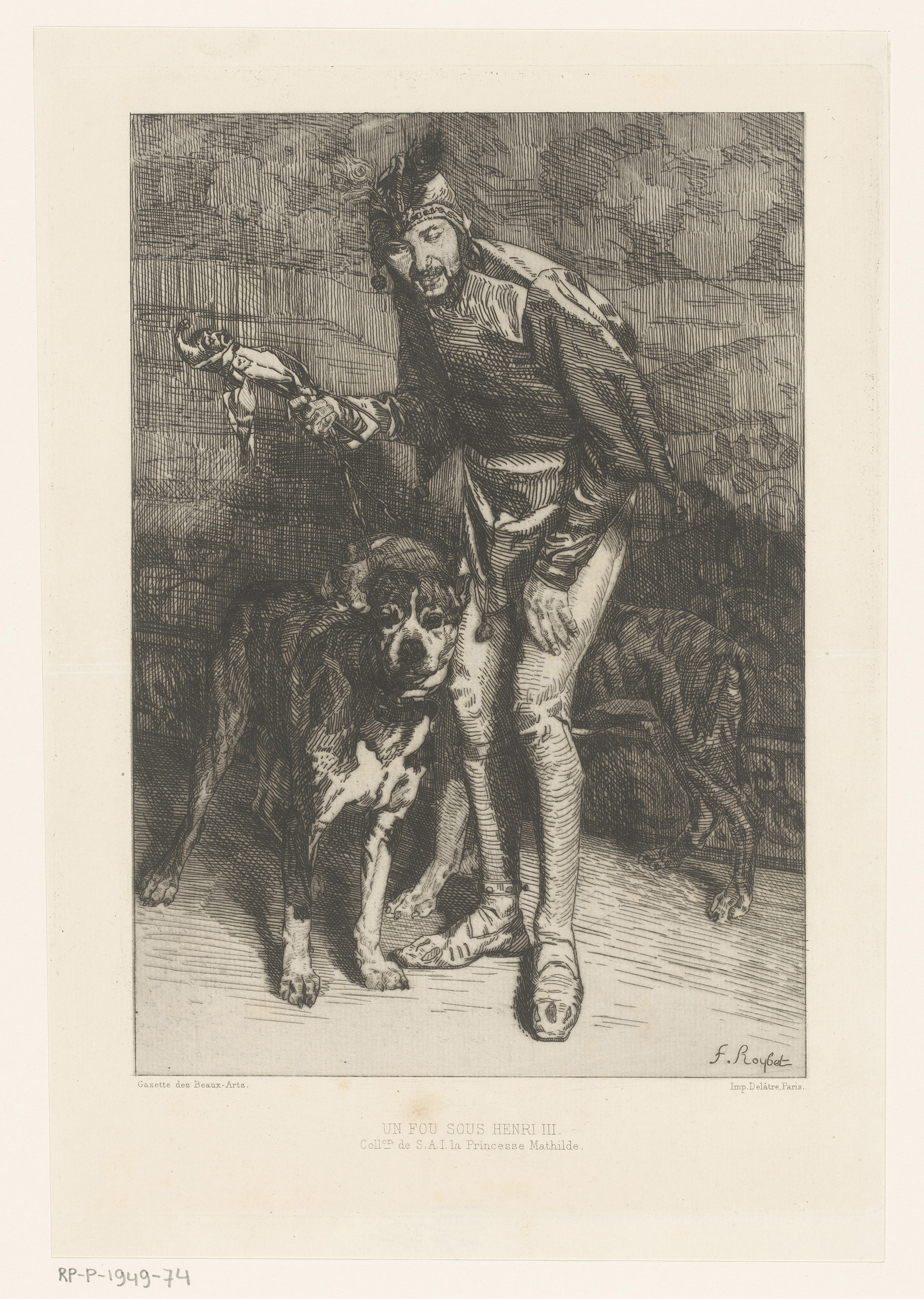 Nar met twee honden