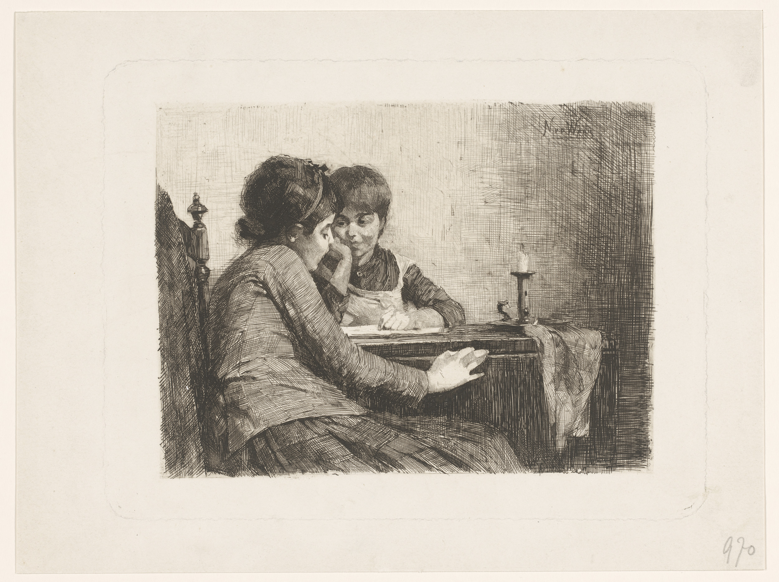Portret van Charley Toorop, kijkend in een platenboek