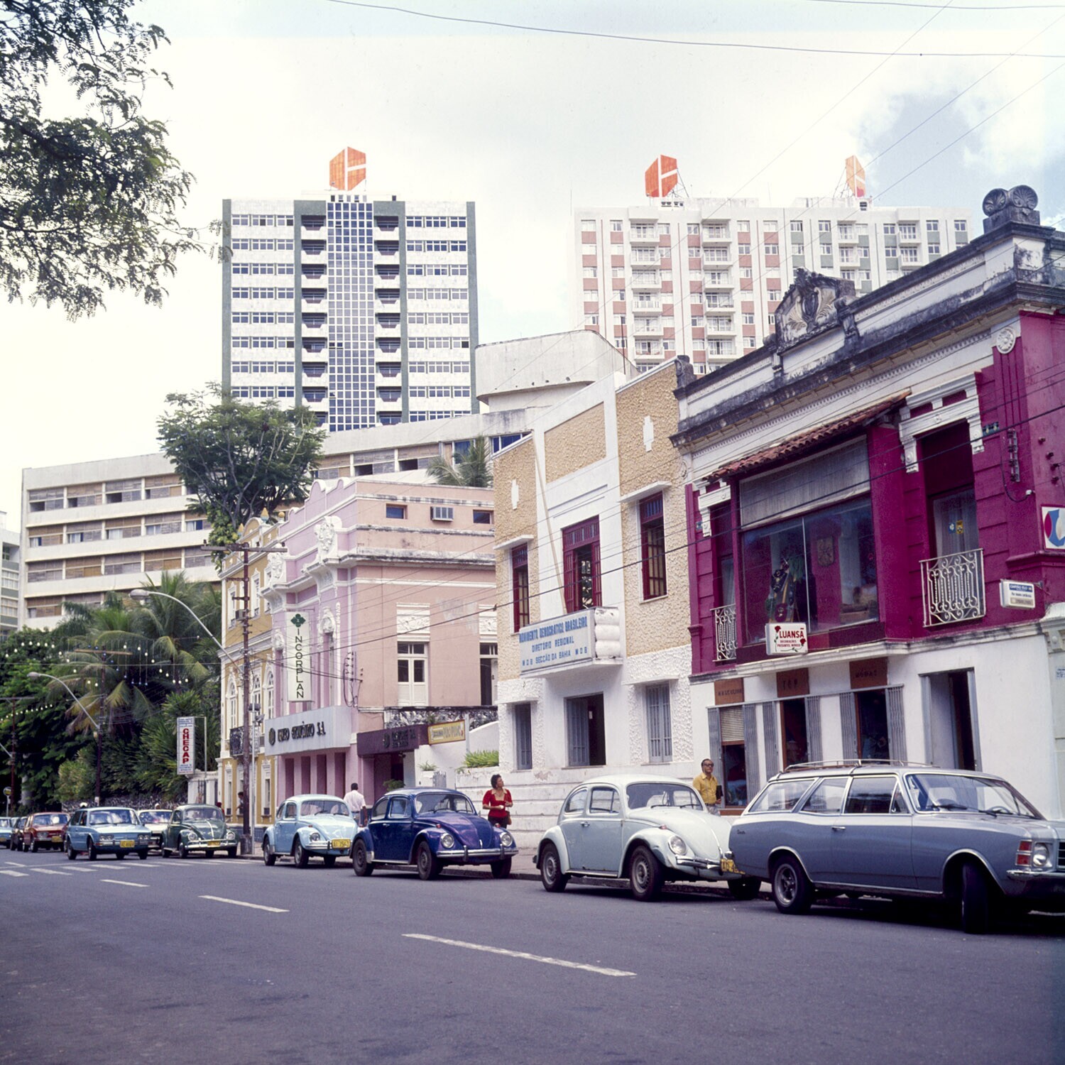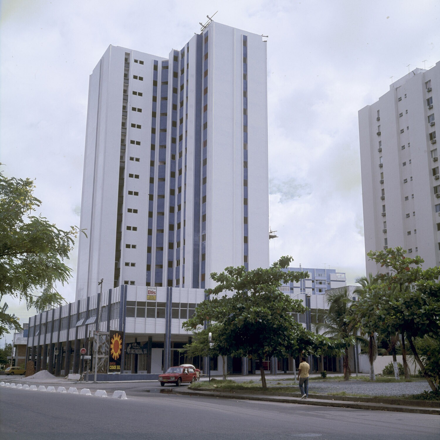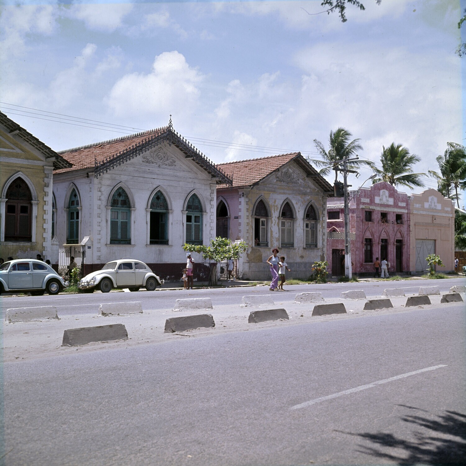 De Boa Viagem met oude huizen, winkels en de nieuwbo...